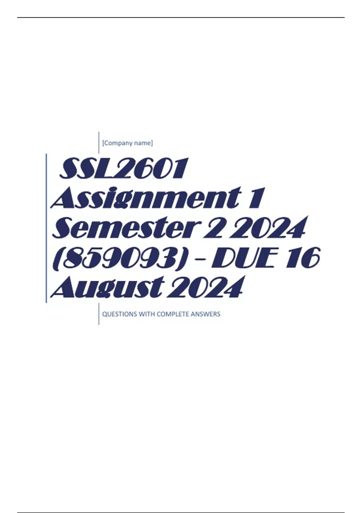 QUESTIONS WITH ANSWERS SSL2601 Assignment 1 Semester 2 2024 (859093) - DUE 16 August 2024