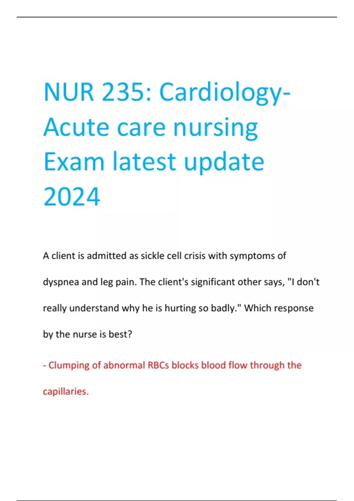 nur 235 cardiologyacute care nursing exam latest