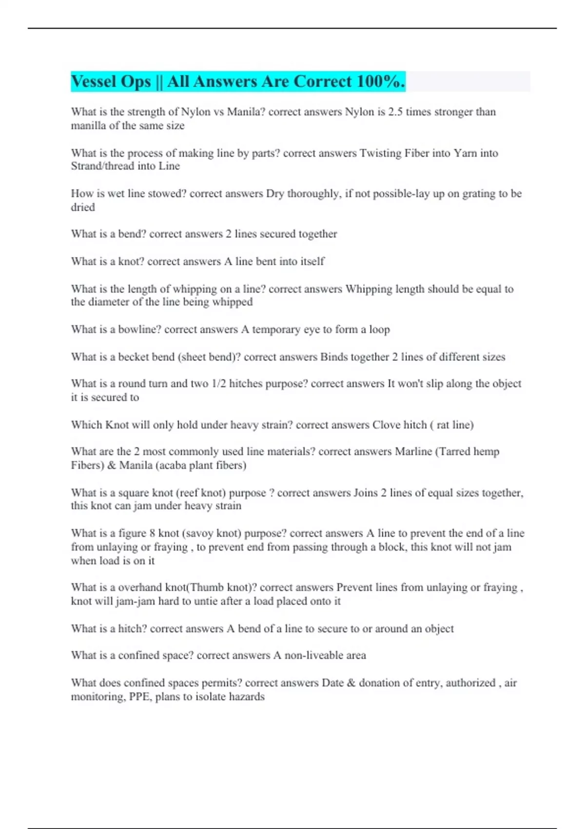 Vessel Ops || All Answers Are Correct 100%.