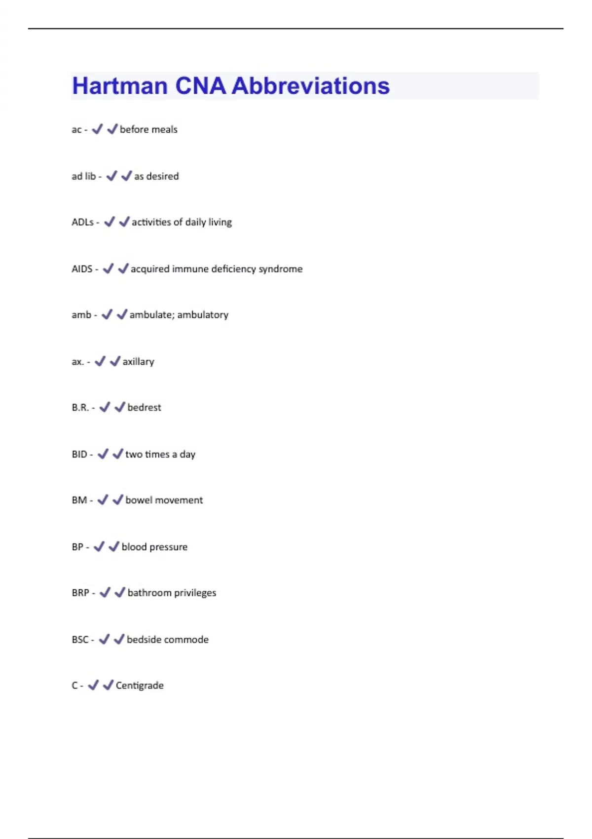 - Hartman CNA Abbreviations