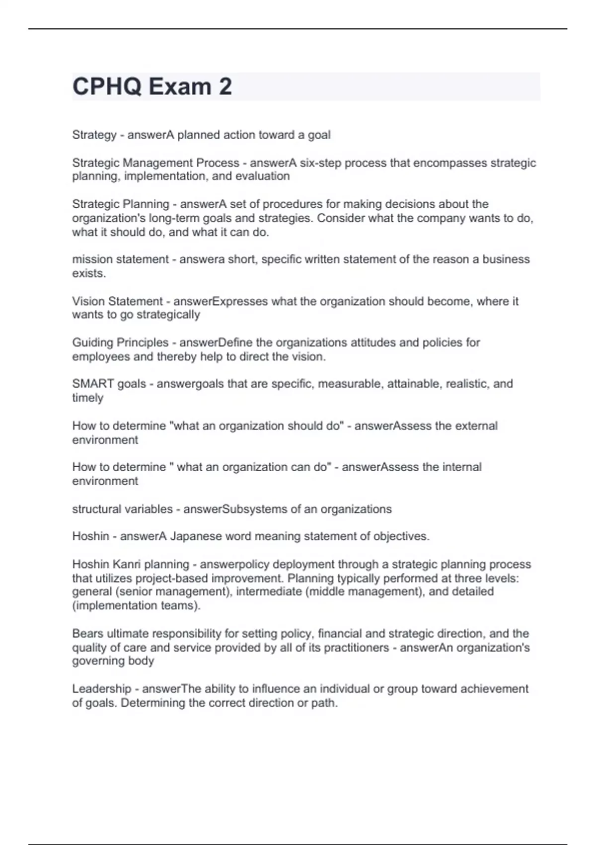 CPHQ Exam 2.Questions with strong answers 2024