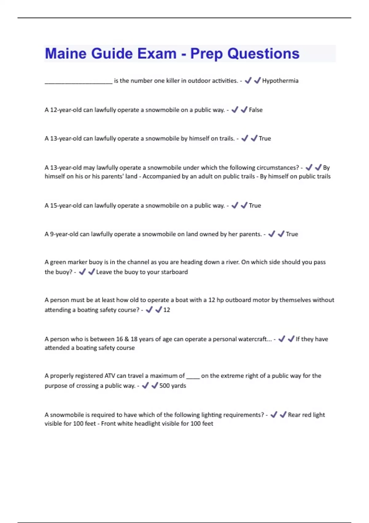 Maine Guide Exam - Prep Questions And Answers With Verified Solutions Graded A+