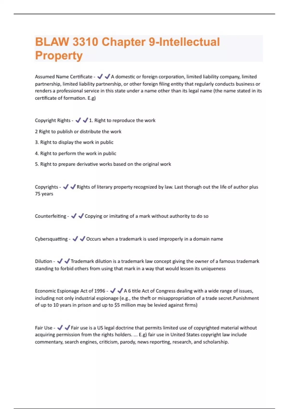 BLAW 3310 Chapter 9-Intellectual Property Questions And Answers Rated A+ New Update Assured Satisfaction