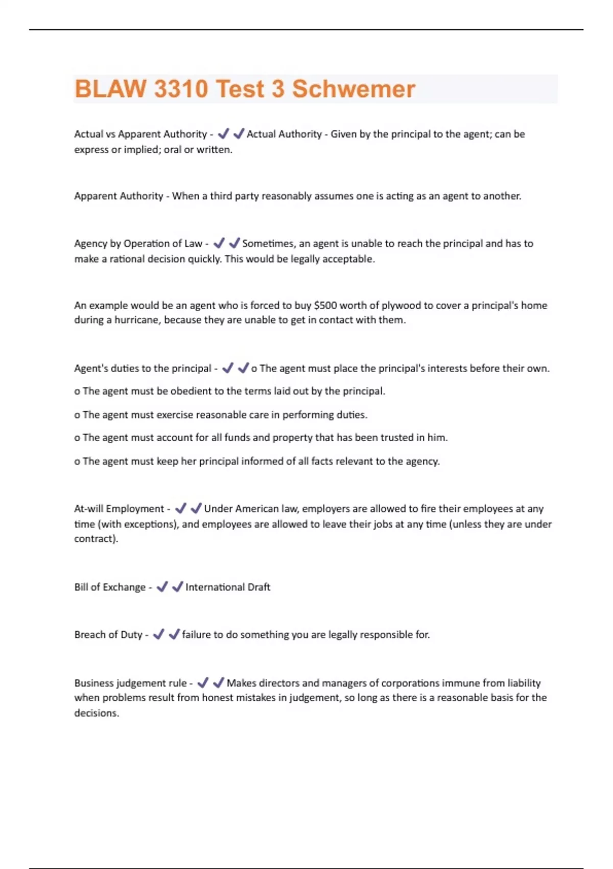 BLAW 3310 Test 3 Schwemer Questions And Answers With Verified Solutions Graded A+