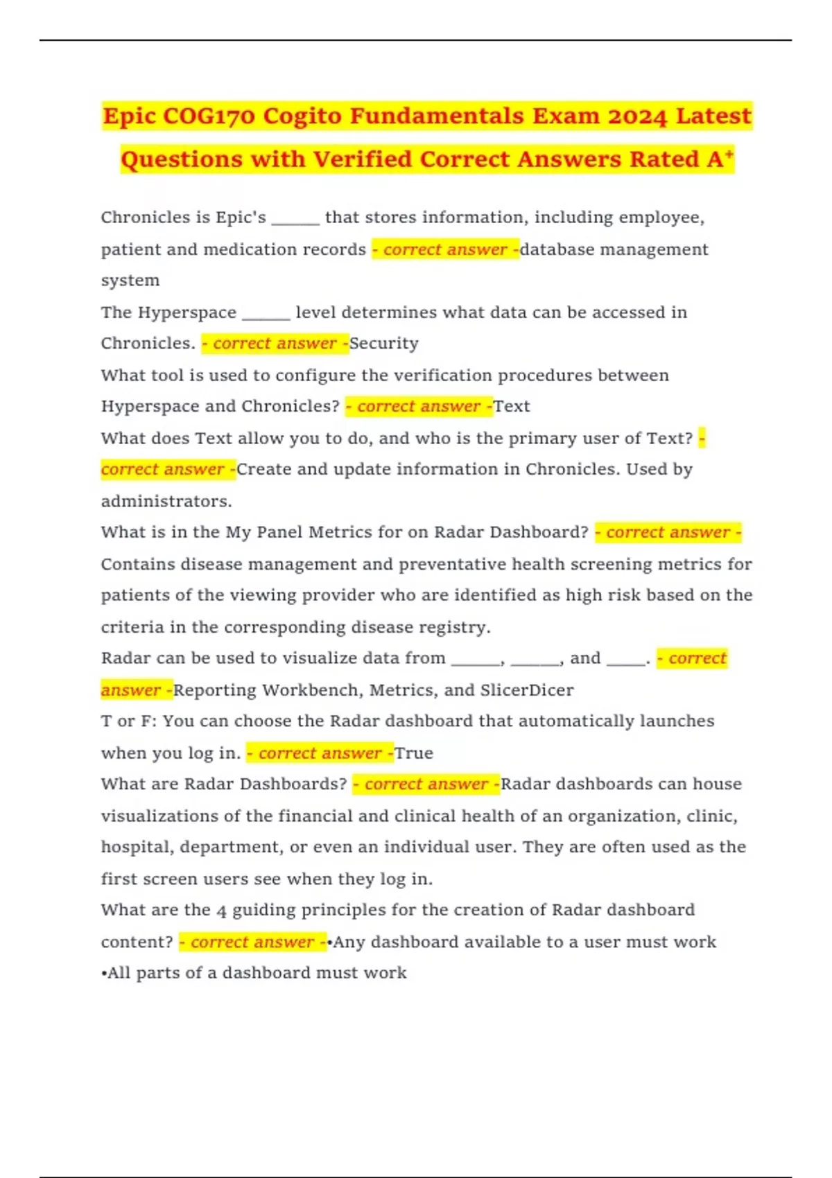Questions with Verified Correct Answers Rated A+