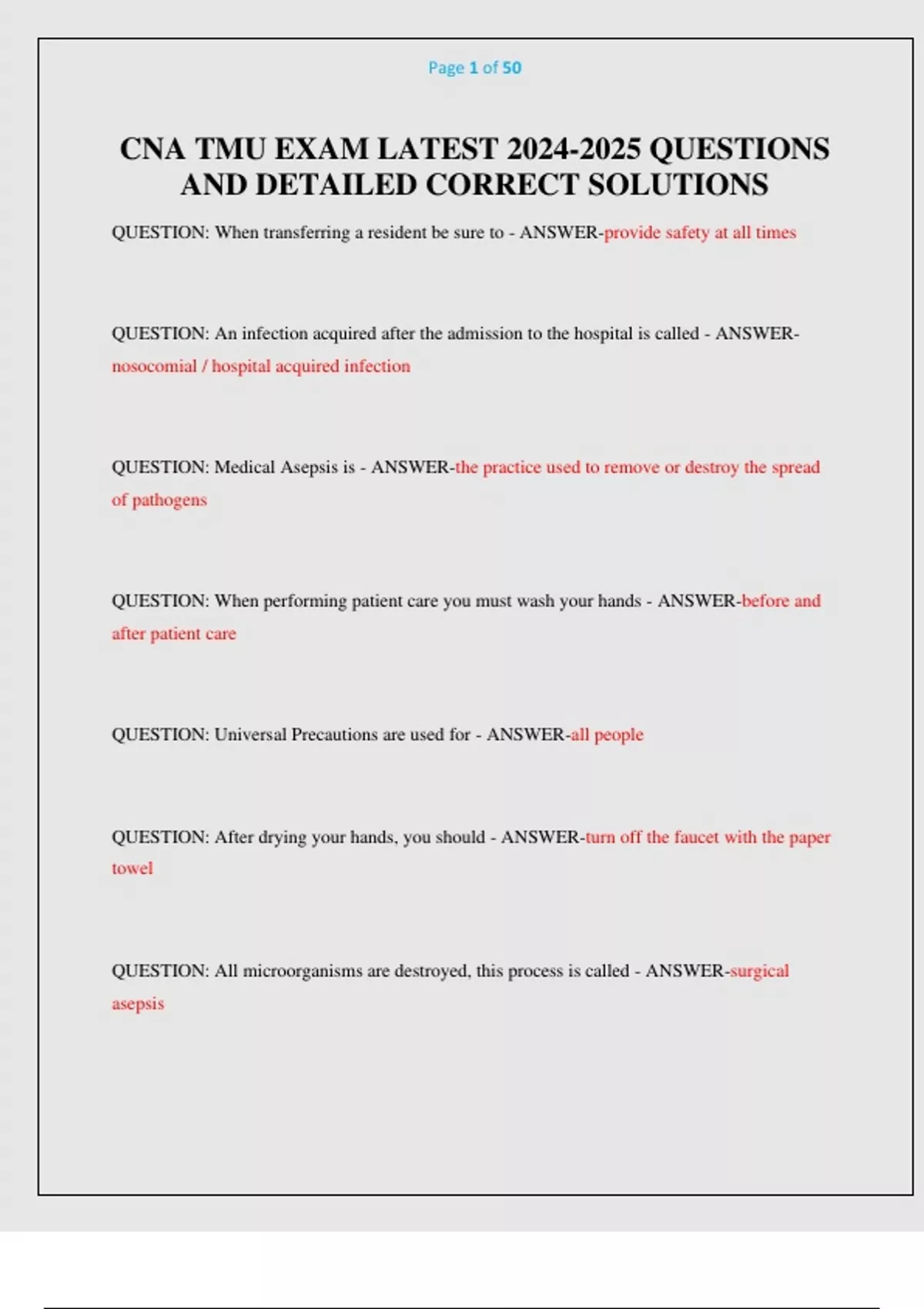 CNA TMU EXAM LATEST QUESTIONS AND DETAILED CORRECT SOLUTIONS