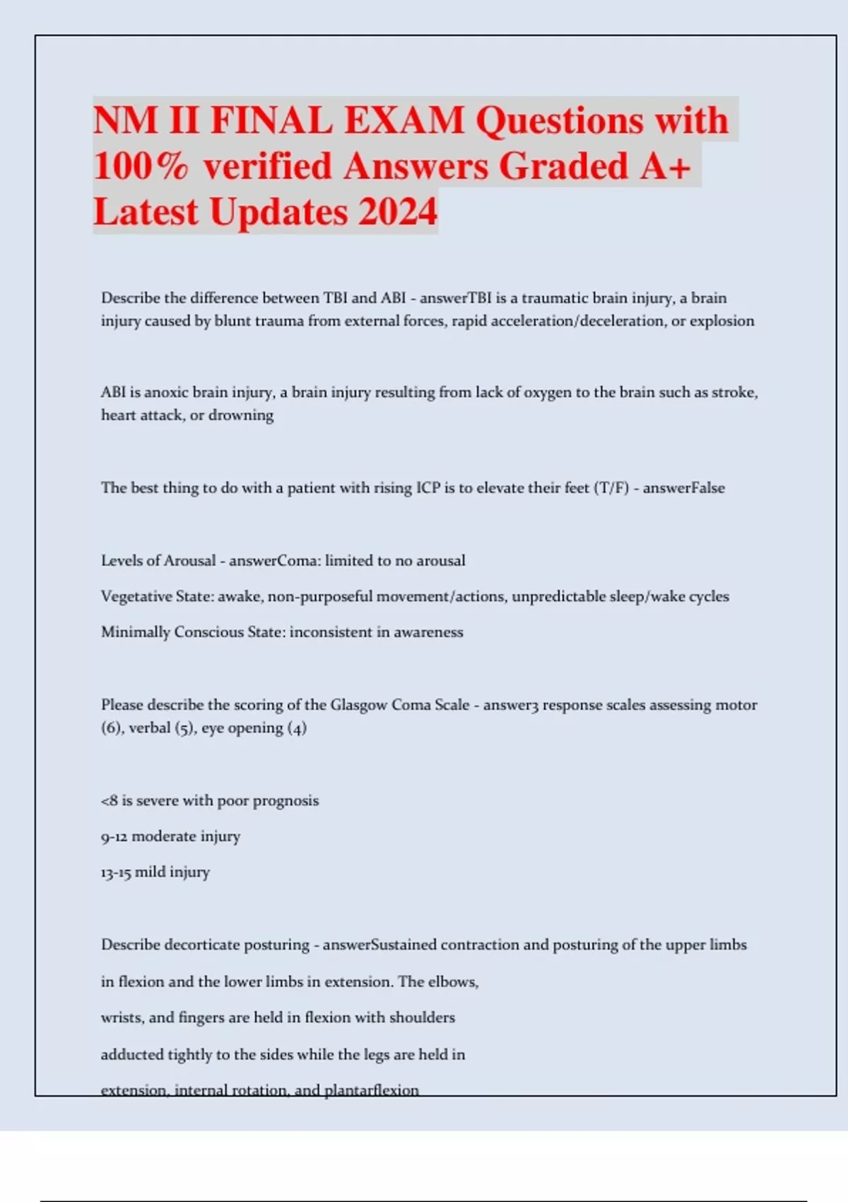 NM II FINAL EXAM Questions with 100% verified Answers Graded A+ Latest Updates 2024