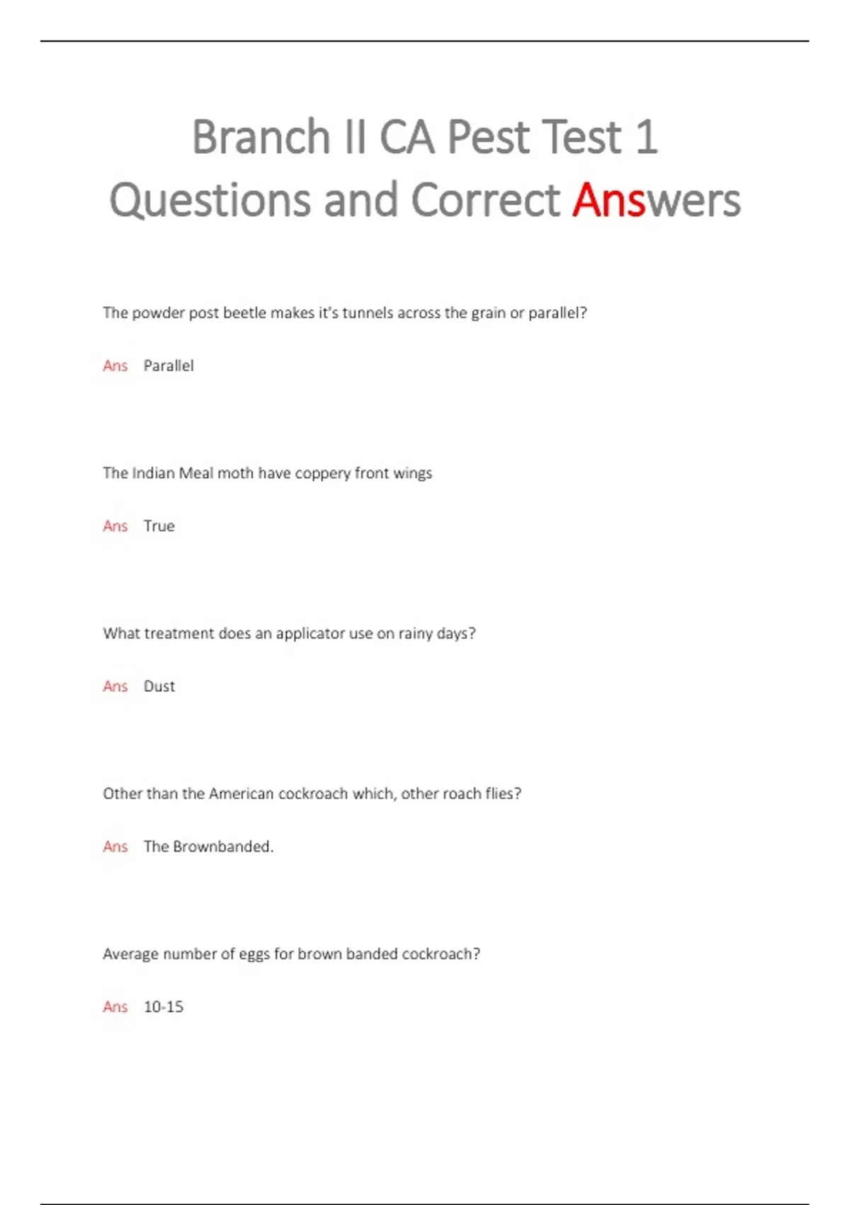 Branch II CA Pest Test 1 Questions and Correct Answers