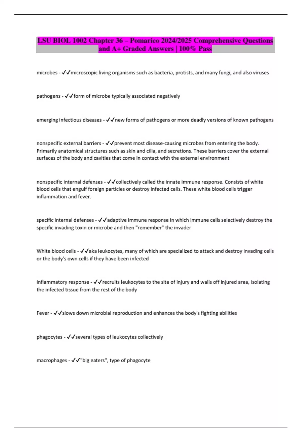 LSU BIOL 1002 Chapter 36 – Pomarico 2024/2025 Comprehensive Questions and A+ Graded Answers | 100% Pass