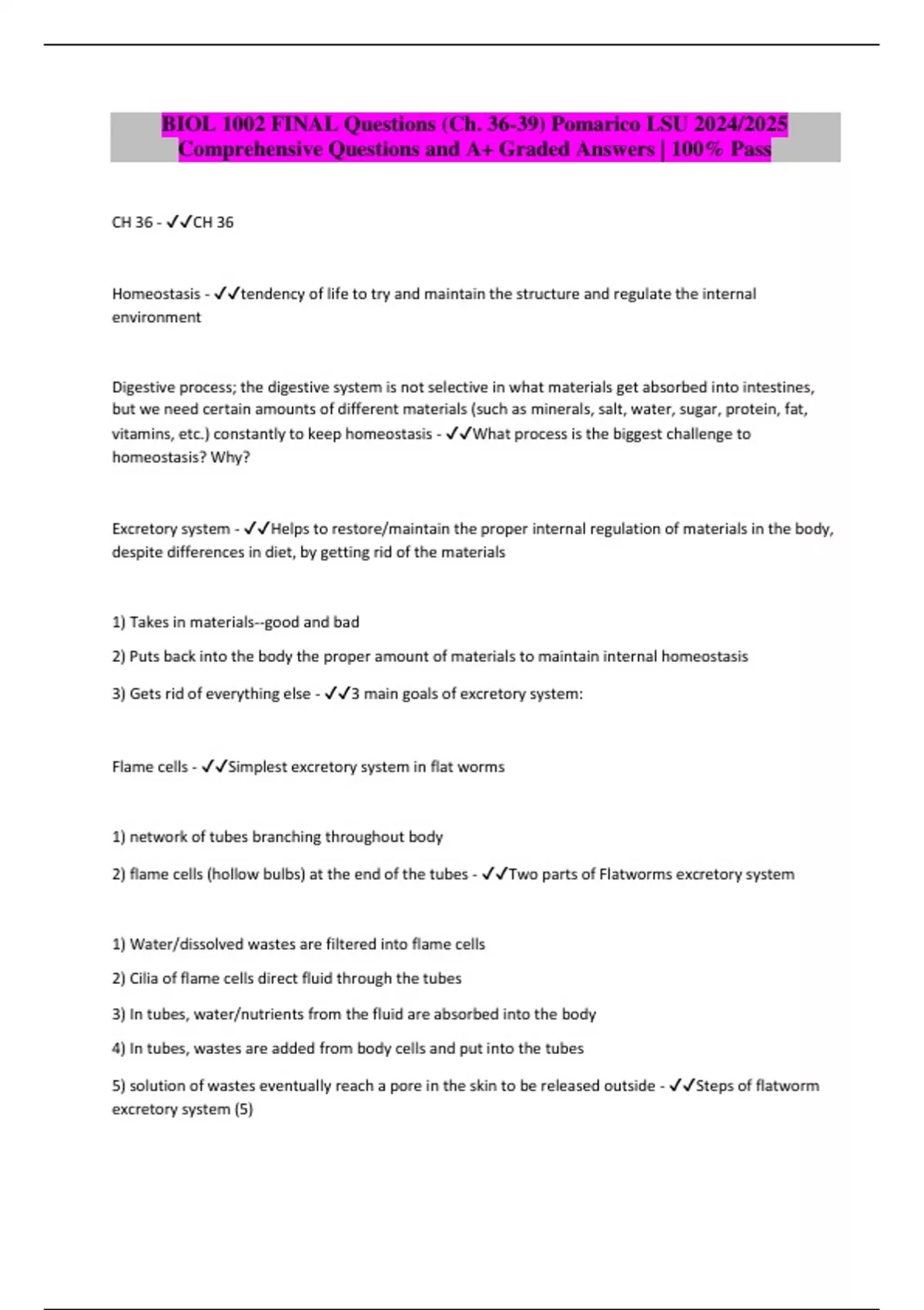 BIOL 1002 FINAL Questions (Ch. 36-39) Pomarico LSU 2024/2025 Comprehensive Questions and A+ Graded Answers | 100% Pass