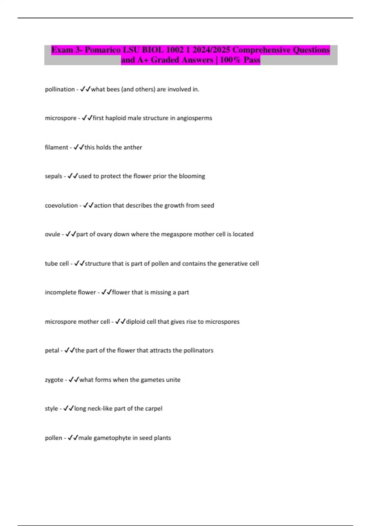 Exam 3- Pomarico LSU BIOL /2025 Comprehensive Questions and A+ Graded Answers | 100% Pass