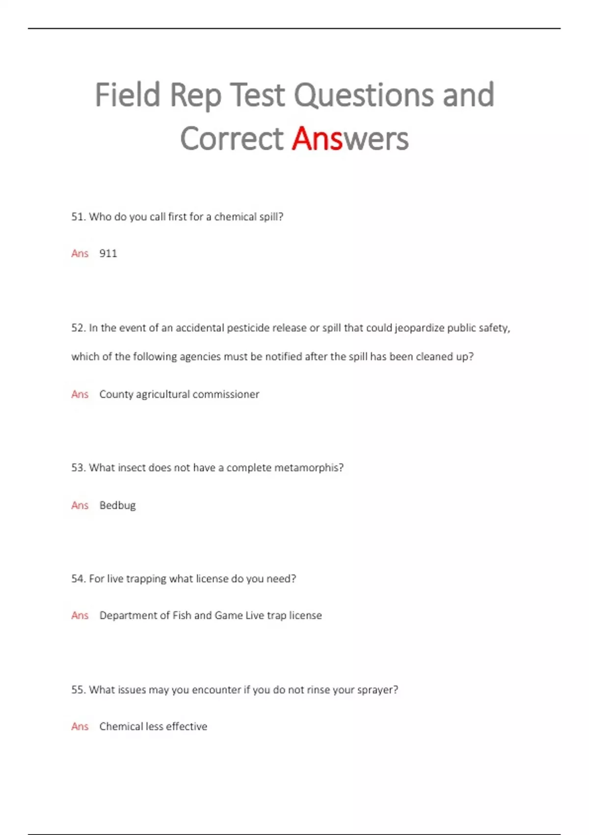 Field Rep Test Questions and Correct Answers