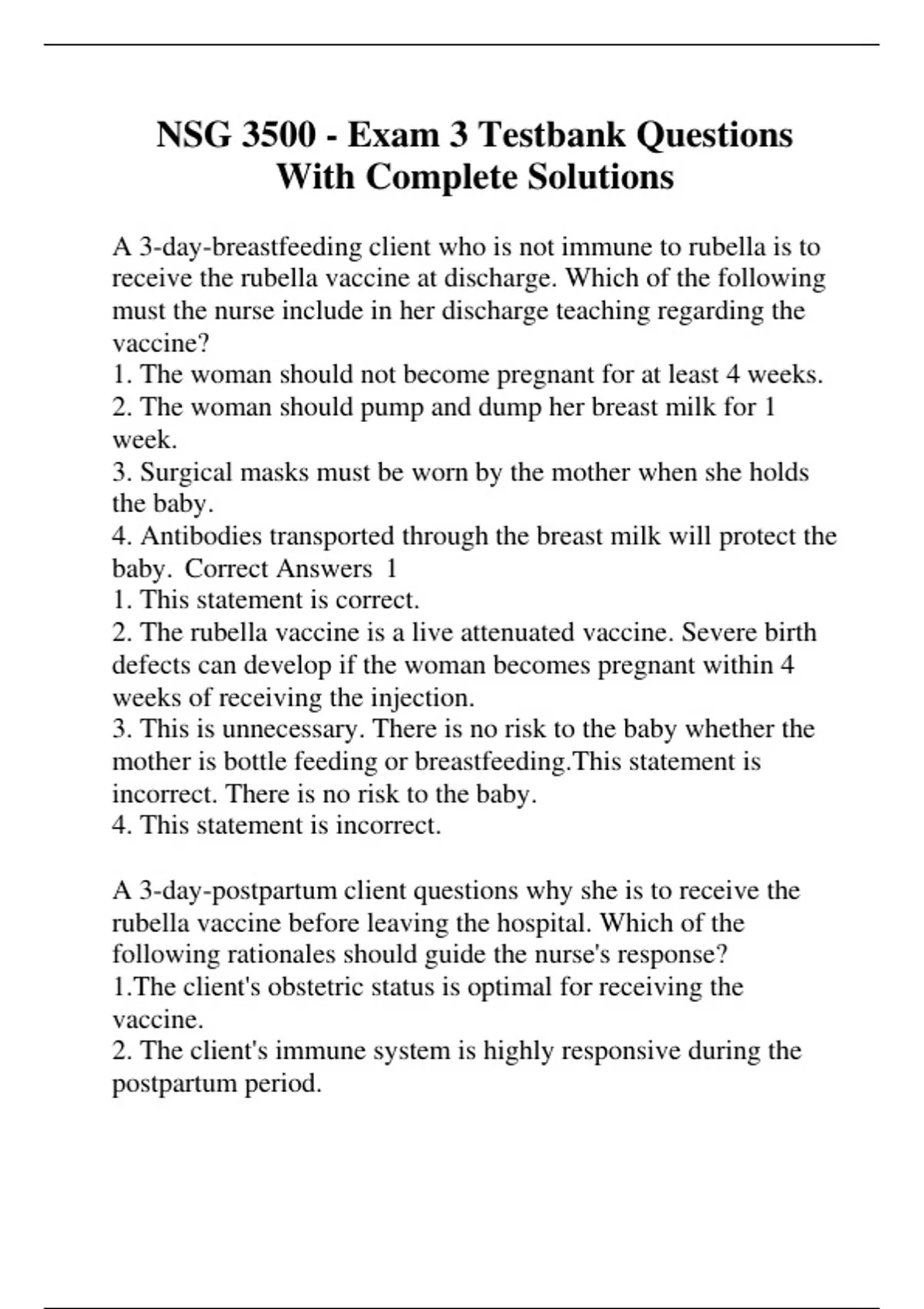 NSG 3500 - Exam 3 Testbank Questions With Complete Solutions