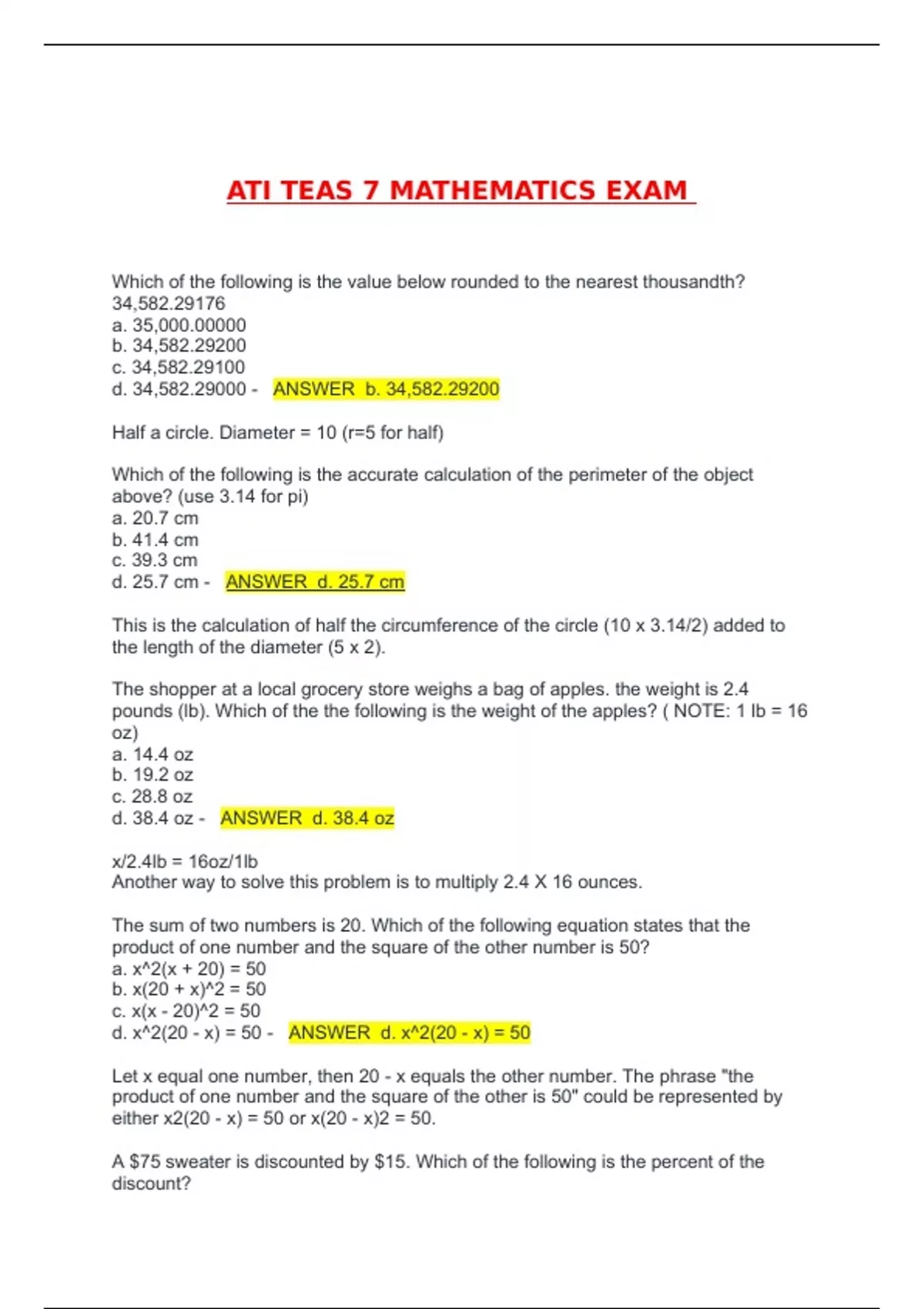 ati teas 7 mathematics exam