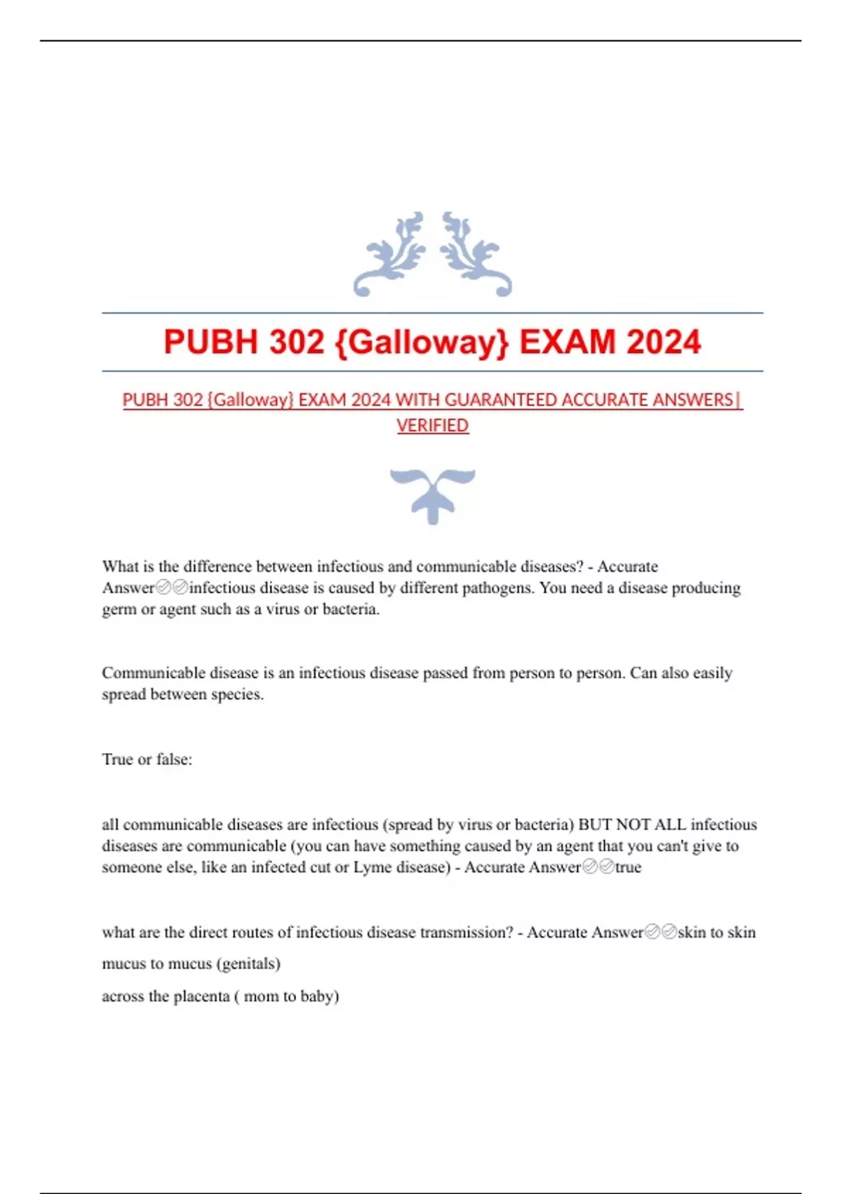 PUBH 302 {Galloway} EXAM 2024 WITH GUARANTEED ACCURATE ANSWERS|VERIFIED