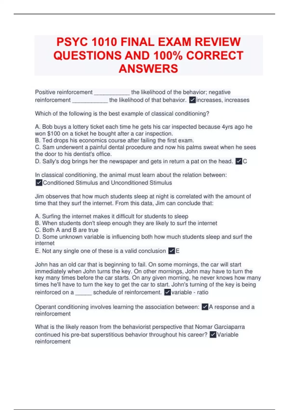 PSYC 1010 FINAL EXAM REVIEW QUESTIONS AND 100% CORRECT ANSWERS