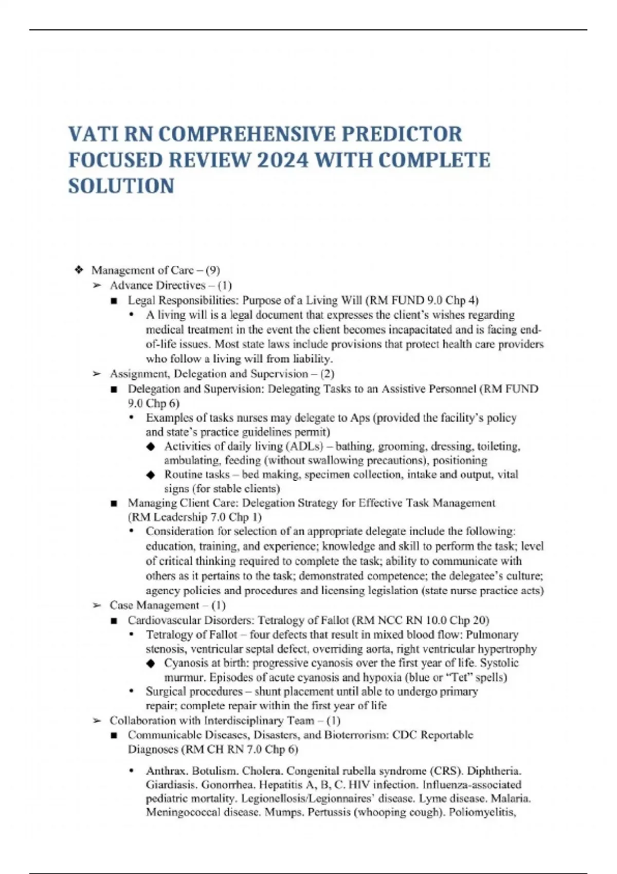 VATI RN COMPREHENSIVE PREDICTOR FOCUSED REVIEW 2024 WITH COMPLETE SOLUTION