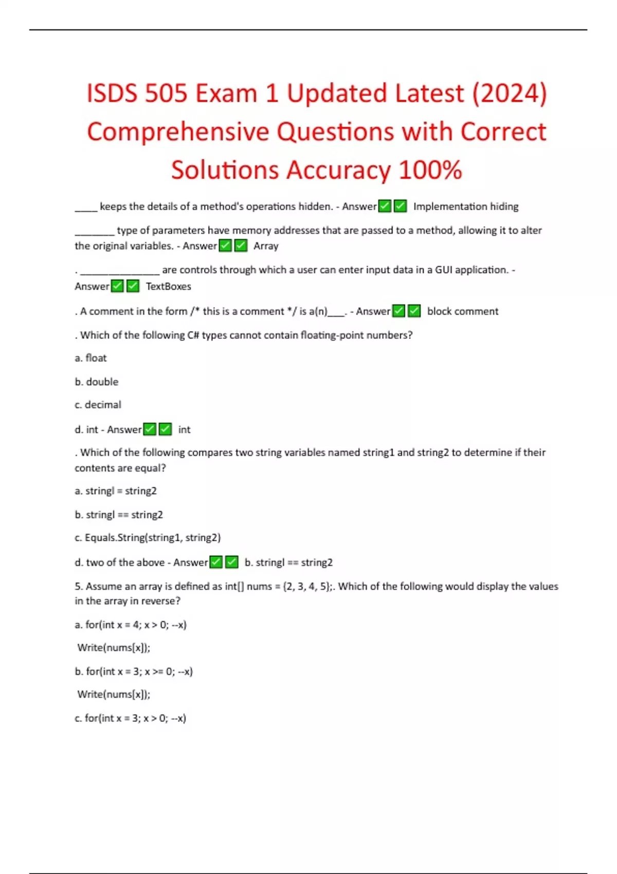 ISDS 505 Midterm Study Guide Update 2024 Comprehensive Questions with Correct Answers