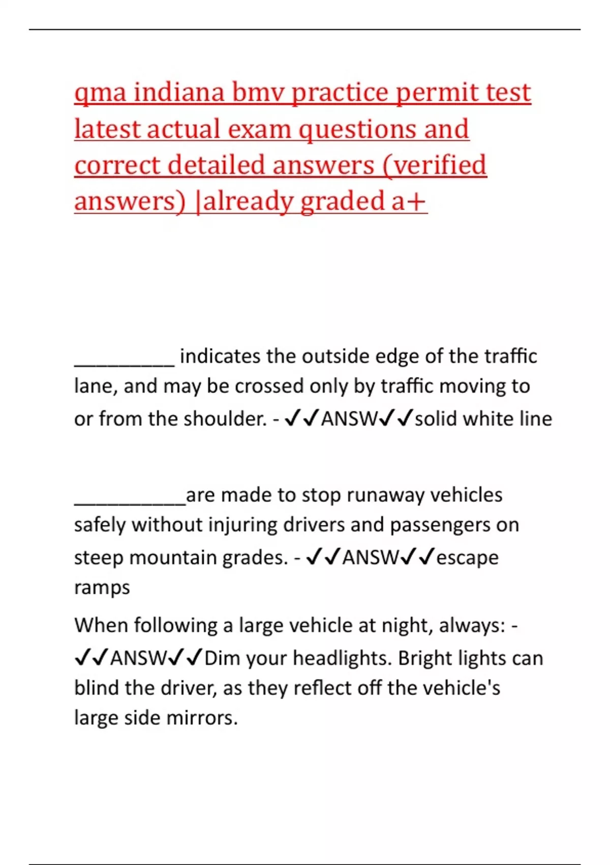 qma indiana bmv practice permit test latest actual exam questions and correct detailed answers