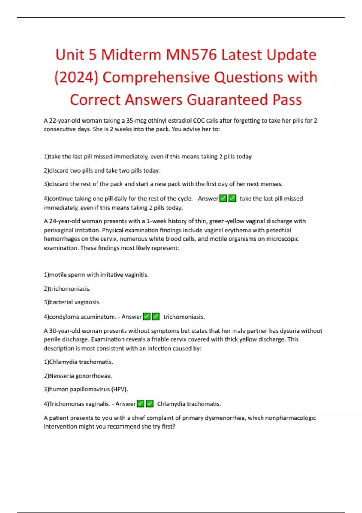 NSG 6020 MIDTERM Latest Update (2024) Comprehensive Questions with Correct Answers