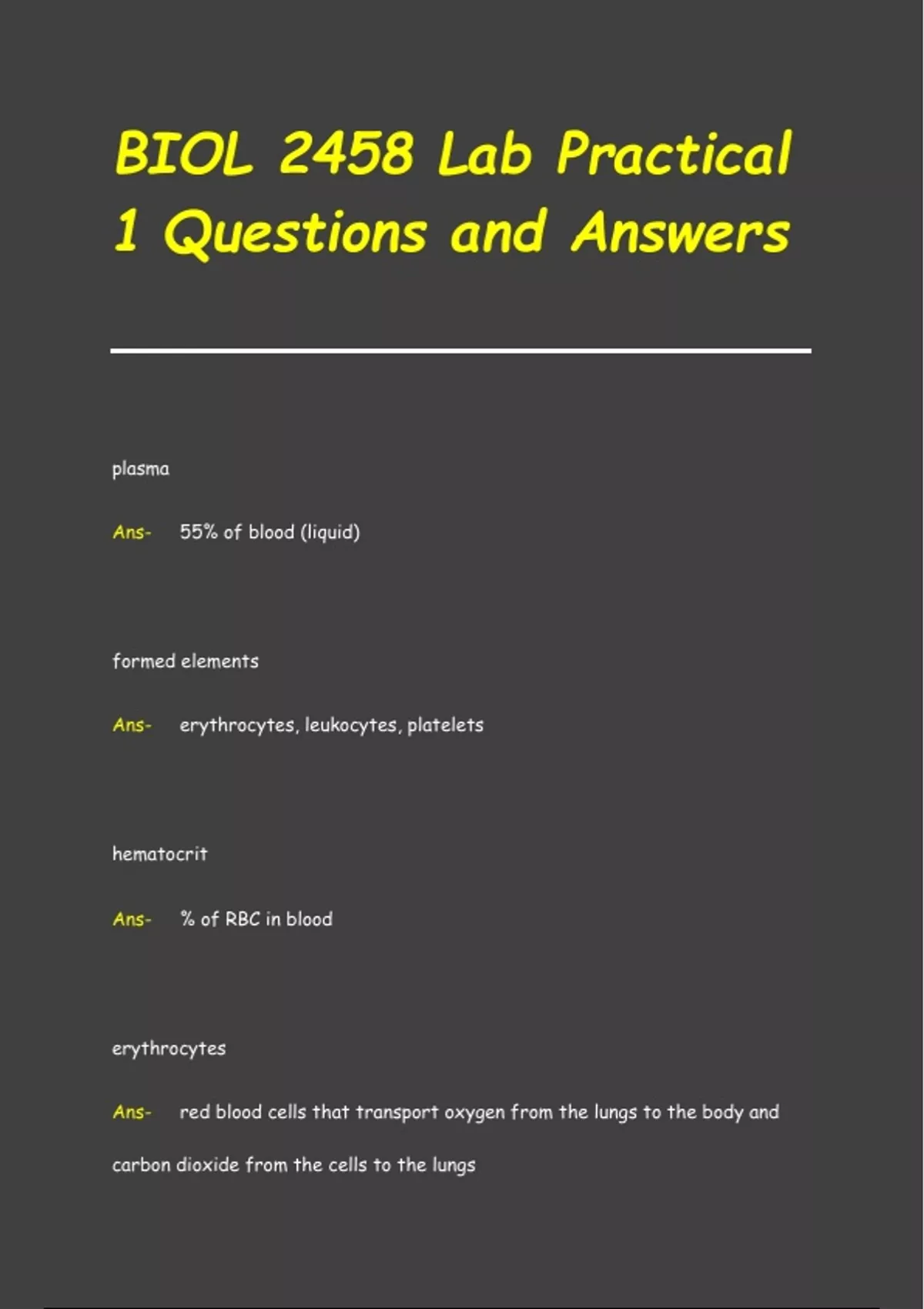 BIOL 2458 Lab Practical 1 Questions and Answers