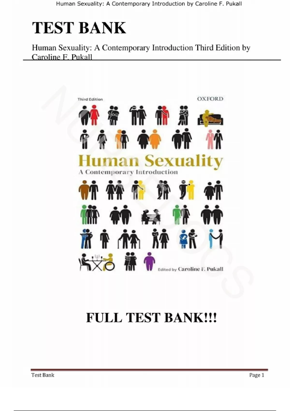 Test bank - for Human Sexuality: A Contemporary Introduction by Caroline F. Pukall, All Chapters 1-19 | Complete Guide A+
