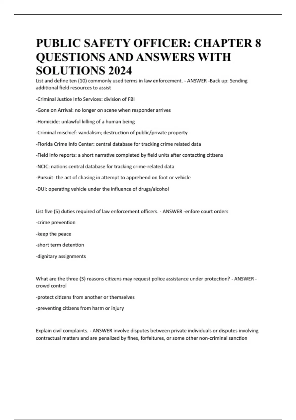 PUBLIC SAFETY OFFICER: CHAPTER 8 QUESTIONS AND ANSWERS WITH SOLUTIONS 2024