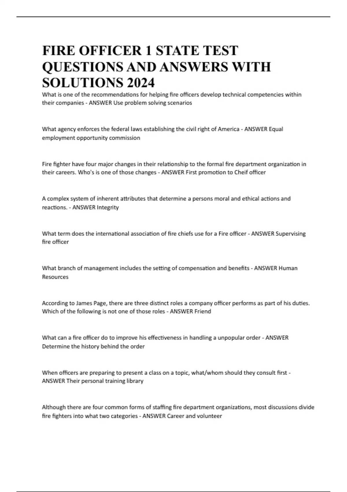 FIRE OFFICER 1 STATE TEST QUESTIONS AND ANSWERS WITH SOLUTIONS 2024