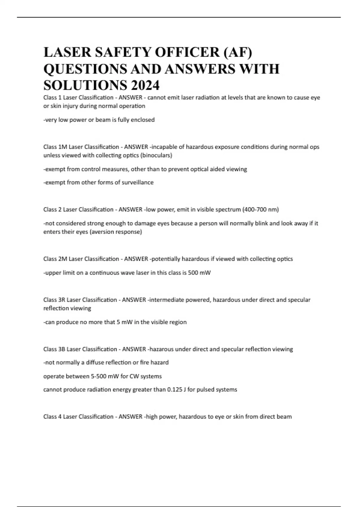LASER SAFETY OFFICER (AF) QUESTIONS AND ANSWERS WITH SOLUTIONS 2024