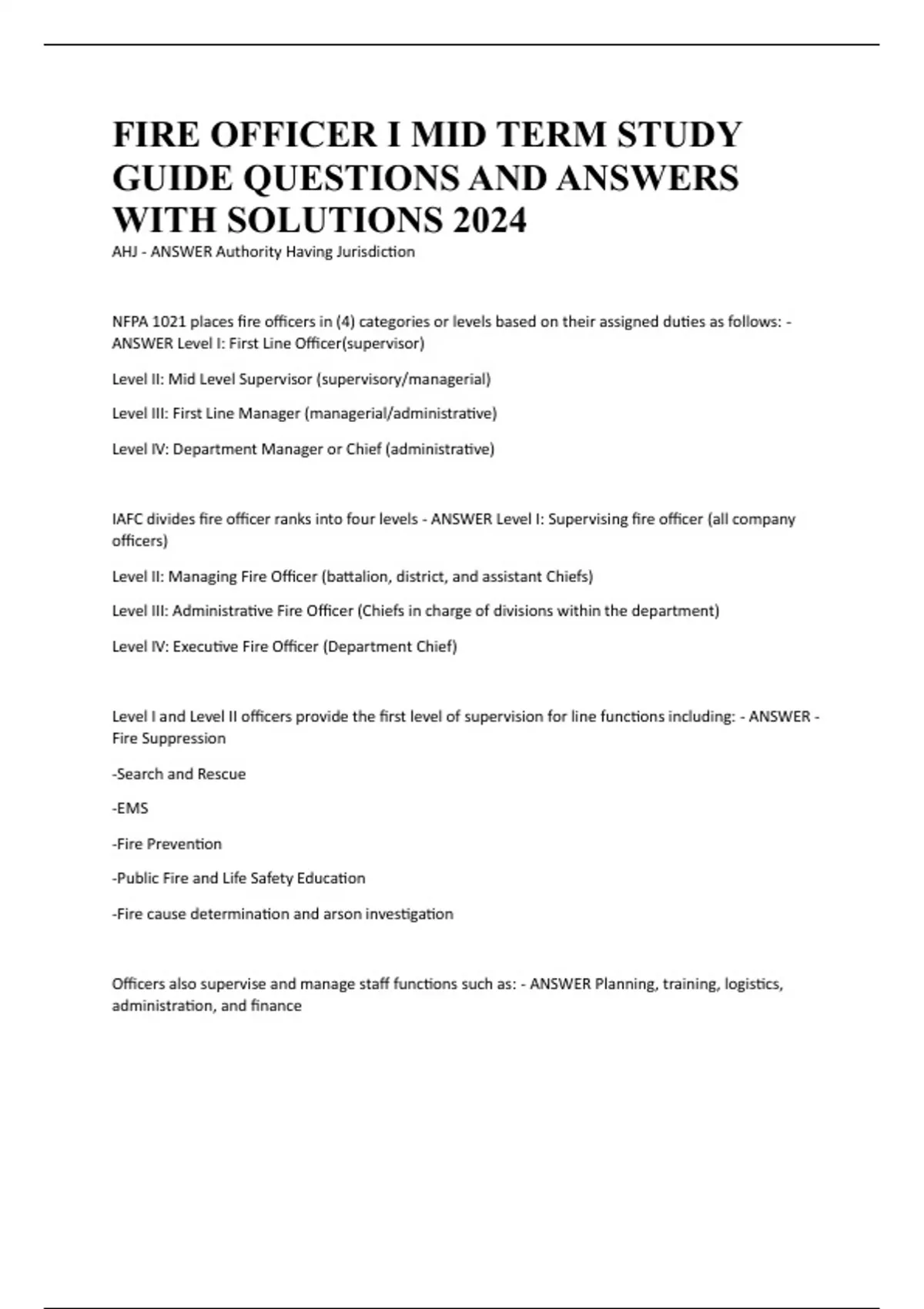 FIRE OFFICER I MID TERM STUDY GUIDE QUESTIONS AND ANSWERS WITH SOLUTIONS 2024