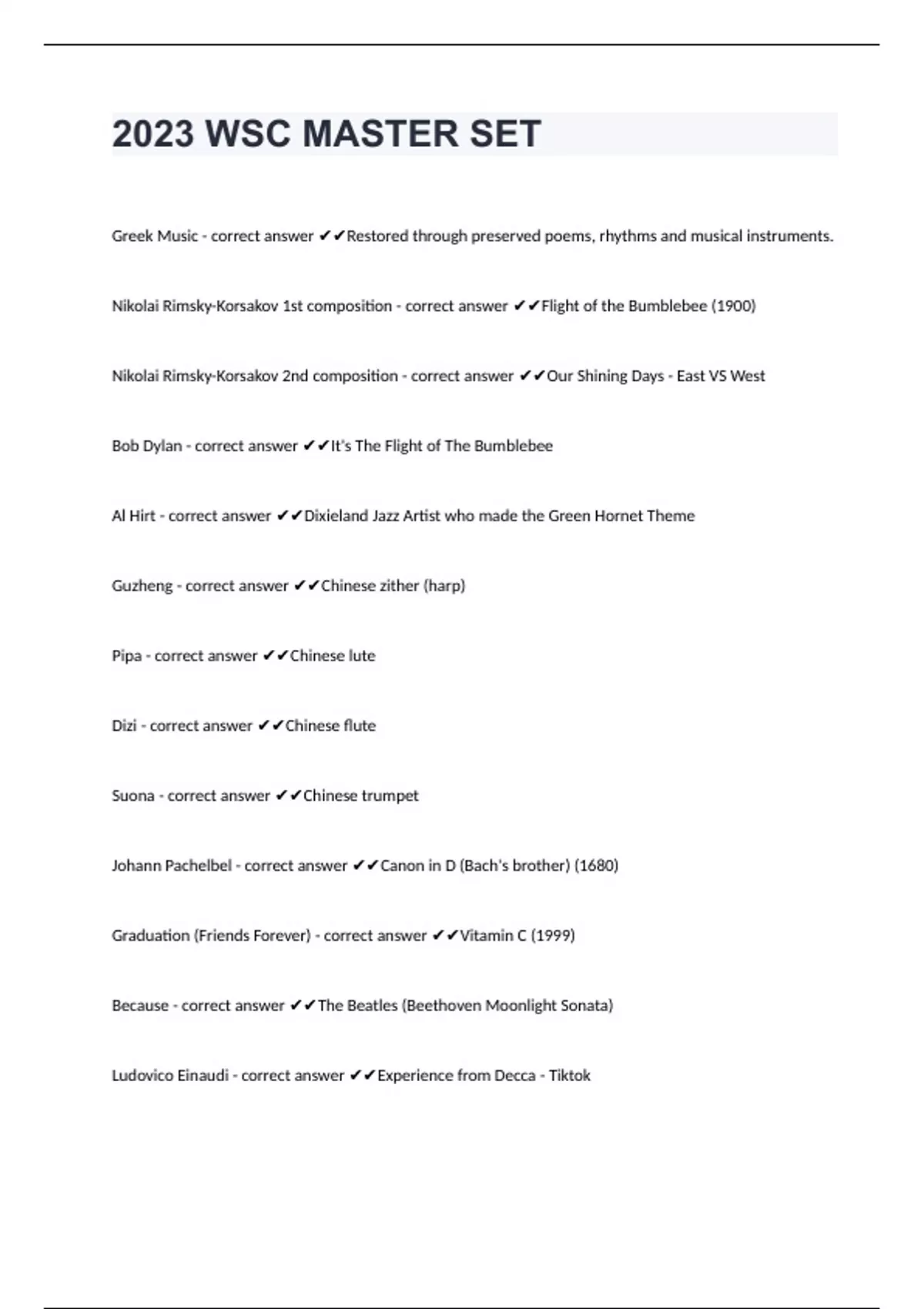 2023 wsc master set questions with correct answers