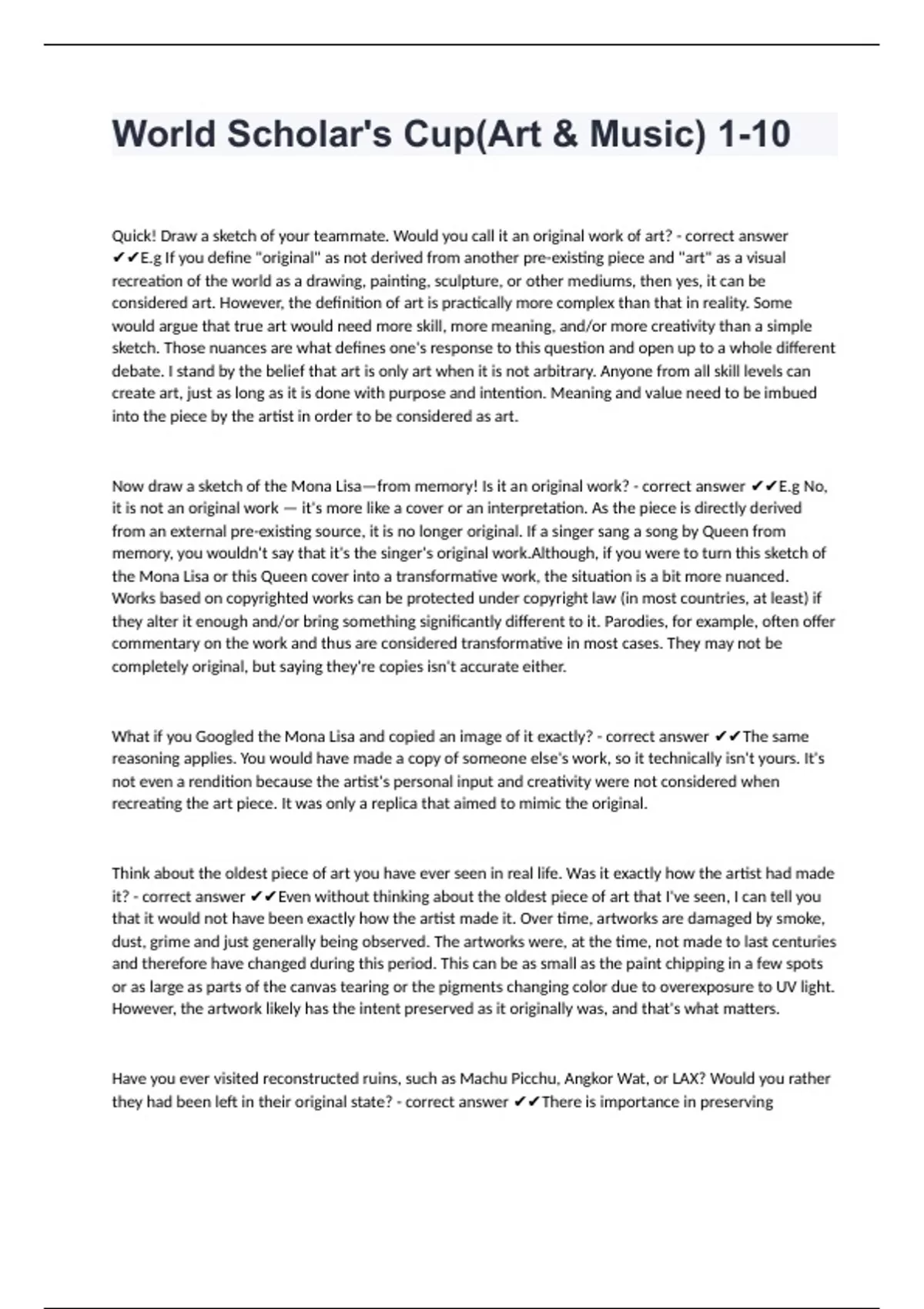 World Scholar's Cup(Art & Music) 1-10 questions with accurate answers