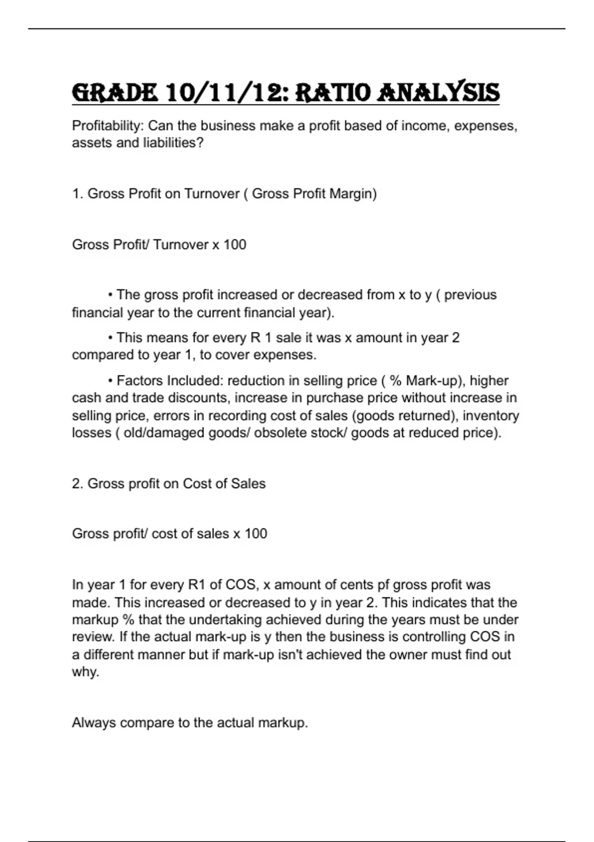 Grade 10/11/12: ratio analysis