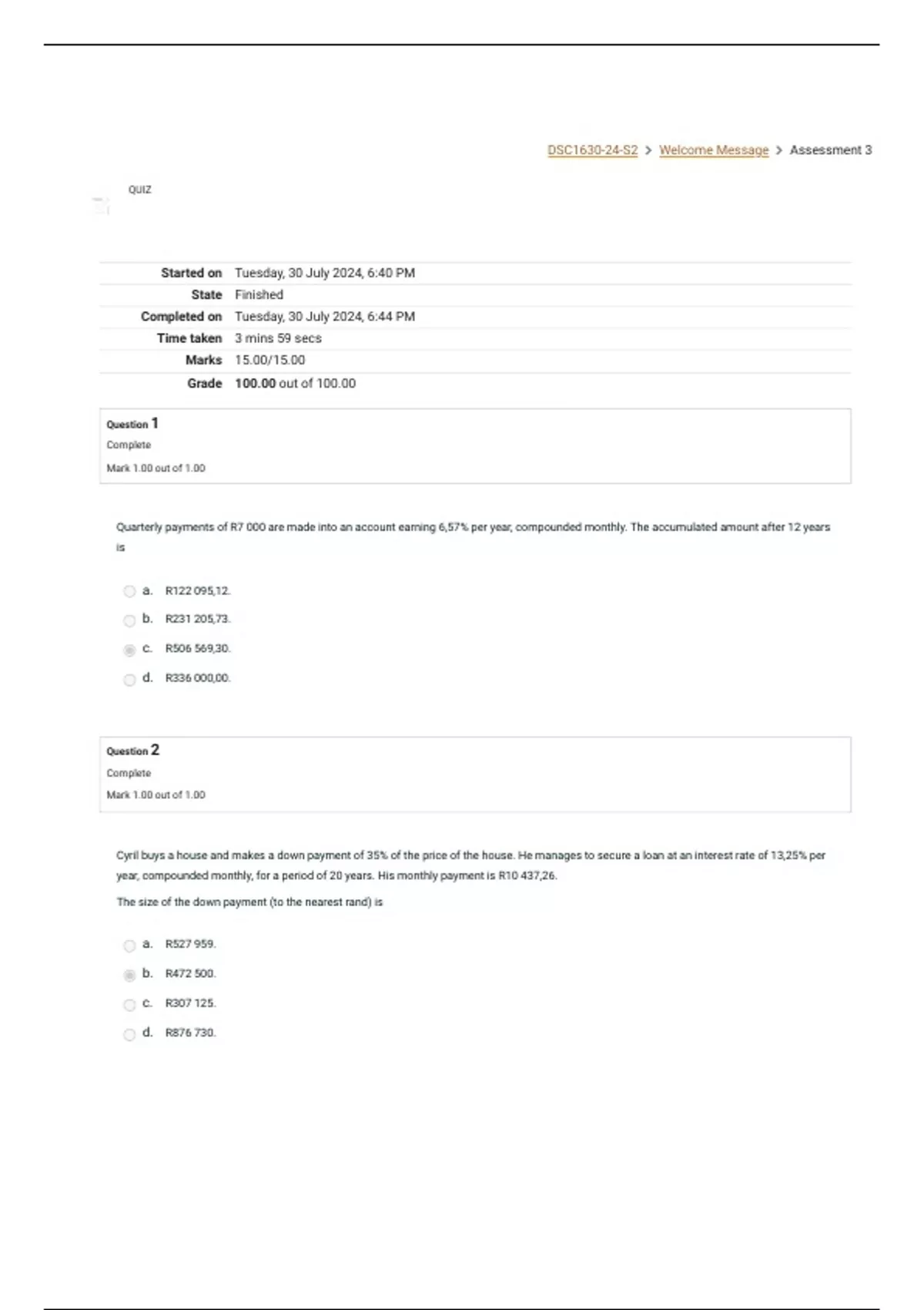 Completed on Tuesday, 30 July 2024, 6:44 PM