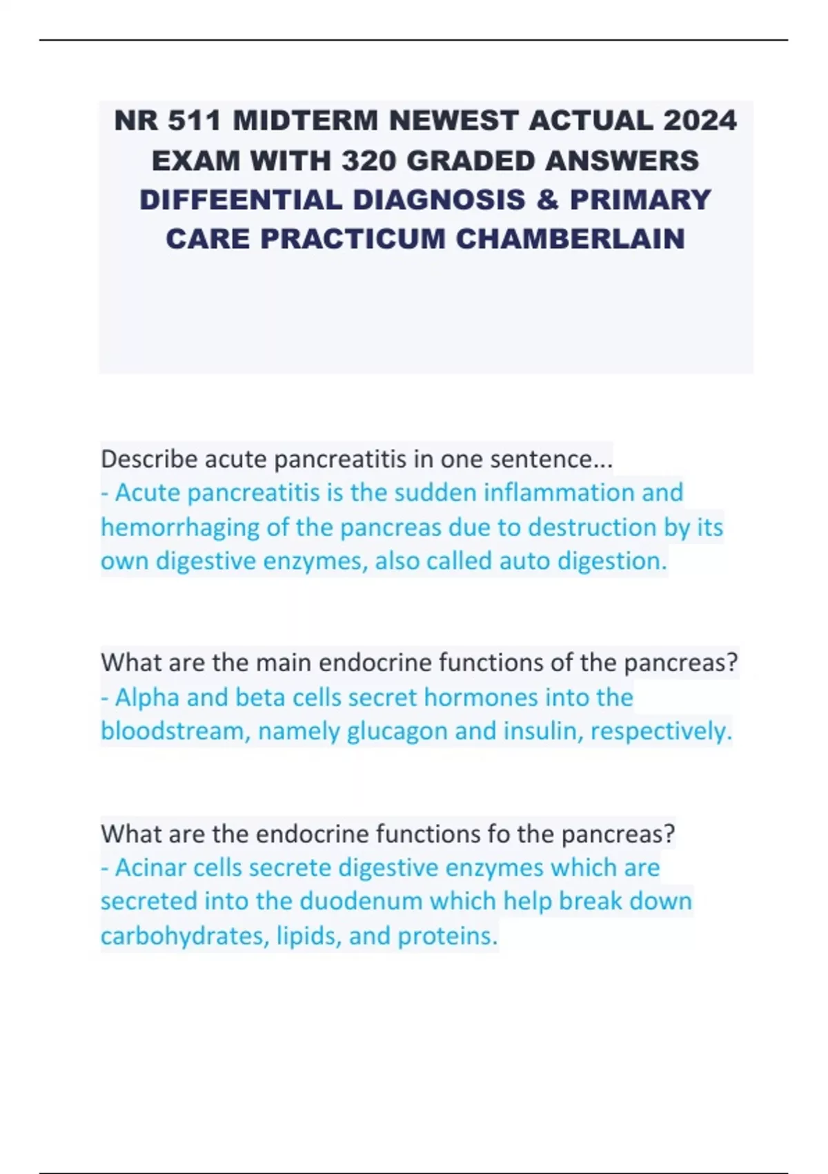 NR 511 MIDTERM NEWEST ACTUAL 2024 EXAM WITH 320 GRADED ANSWERS DIFFEENTIAL DIAGNOSIS & PRIMARY CARE PRACTICUM CHAMBERLAIN