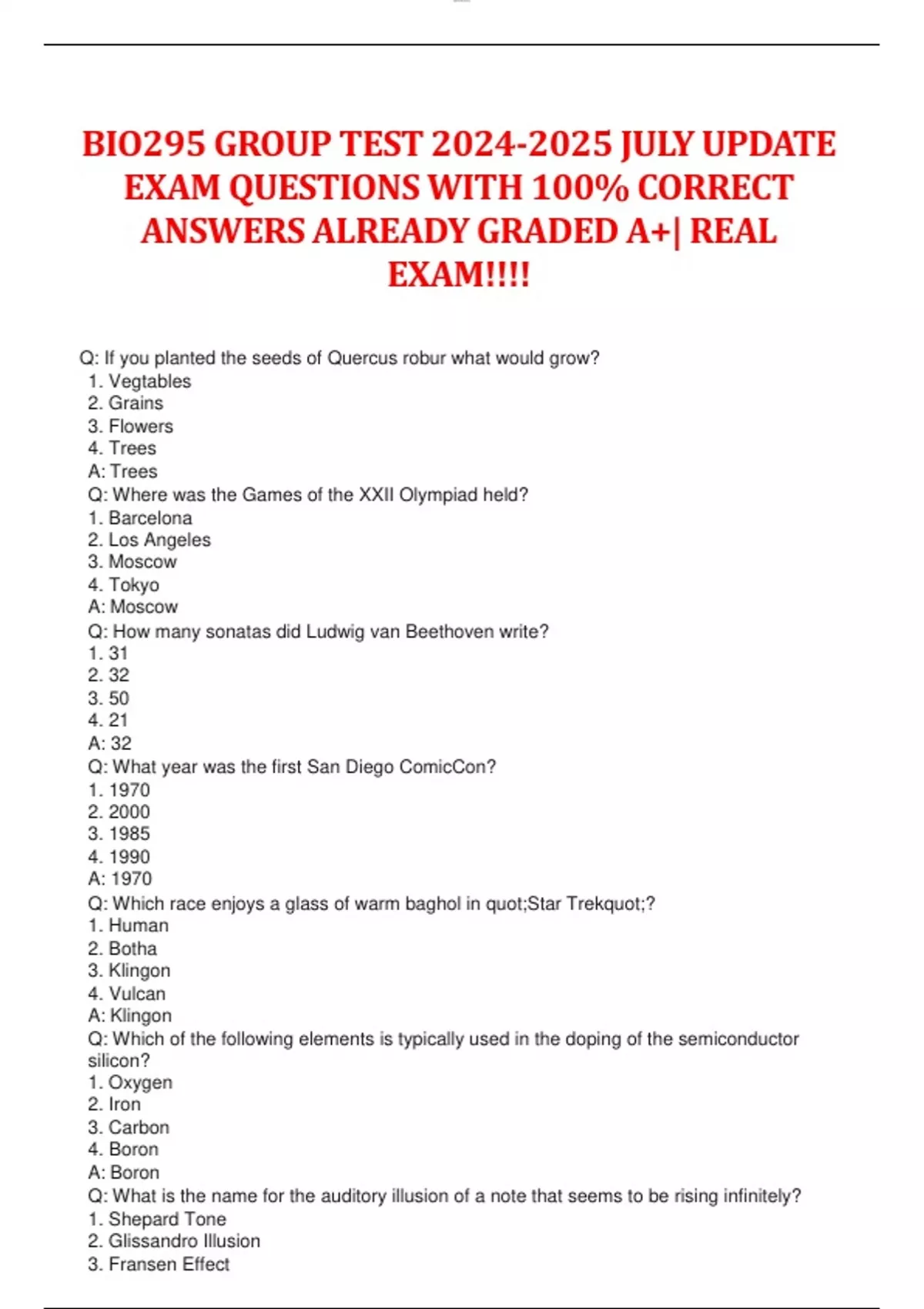 BIO295 GROUP TEST JULY UPDATE EXAM QUESTIONS WITH 100% CORRECT ANSWERS ALREADY GRADED A+| REAL EXAM!!!! BIO295 GROUP TEST JULY UPDATE EXAM QUESTIONS WITH 100% CORRECT ANSWERS ALREADY GRADED A+| REAL EXAM!!!! BIO295 GROUP TEST JULY UPDATE EXAM QUESTIONS WITH 100% CORRECT ANSWERS ALREADY GRADED A+| REAL EXAM!!!! BIO295 GROUP TEST JULY UPDATE EXAM QUESTIONS WITH 100% CORRECT ANSWERS ALREADY GRADED A+| REAL EXAM!!!! BIO295 GROUP TEST JULY UPDATE EXAM QUESTIONS WITH 100% CORRECT ANSWERS ALREADY GRADED A+| REAL EXAM!!!! BIO295 GROUP TEST JULY UPDATE EXAM QUESTIONS WITH 100% CORRECT ANSWERS ALREADY GRADED A+| REAL EXAM!!!! BIO295 GROUP TEST JULY UPDATE EXAM QUESTIONS WITH 100% CORRECT ANSWERS ALREADY GRADED A+| REAL EXAM!!!!