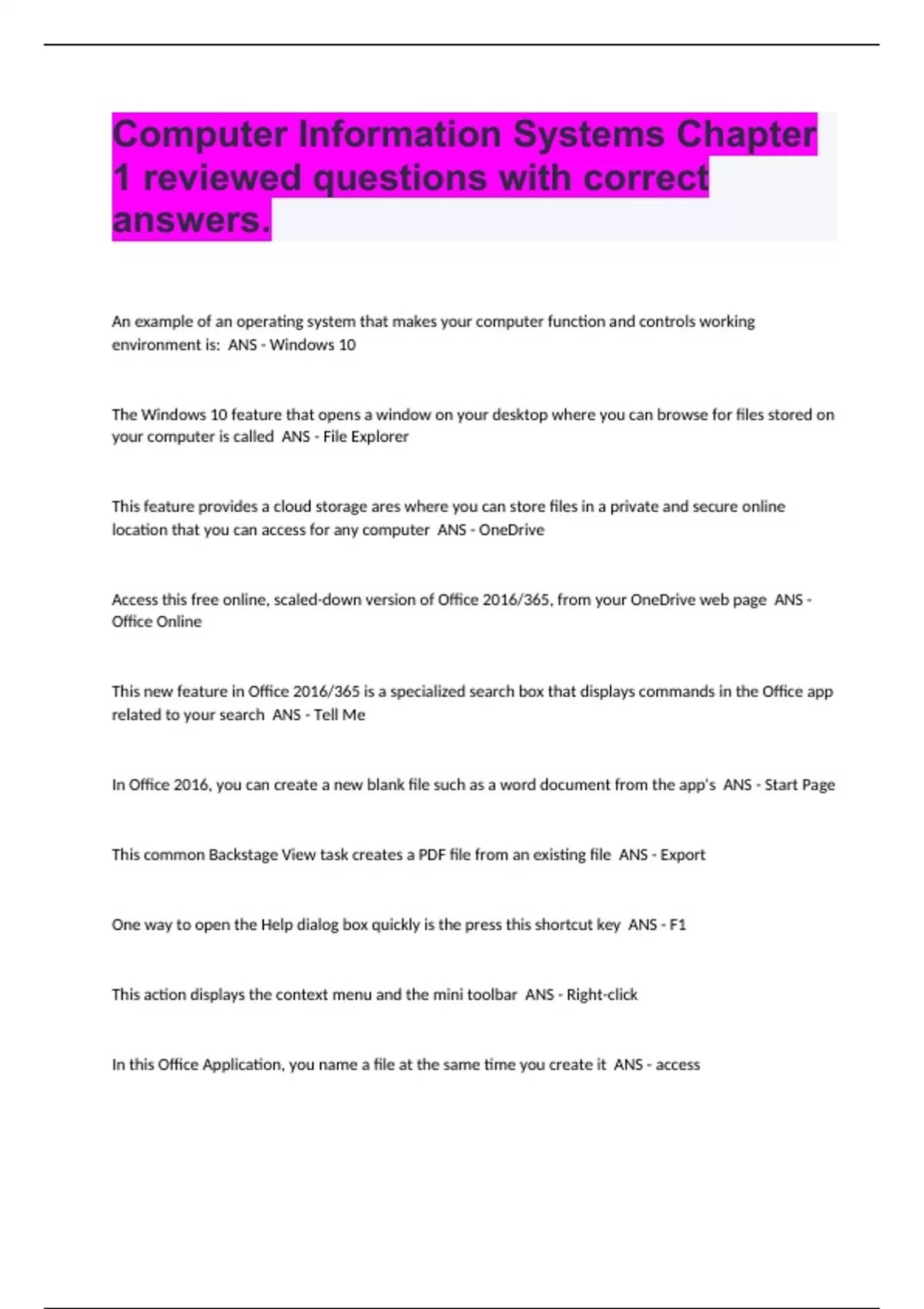 Computer Information Systems Chapter 1 reviewed questions with correct answers.