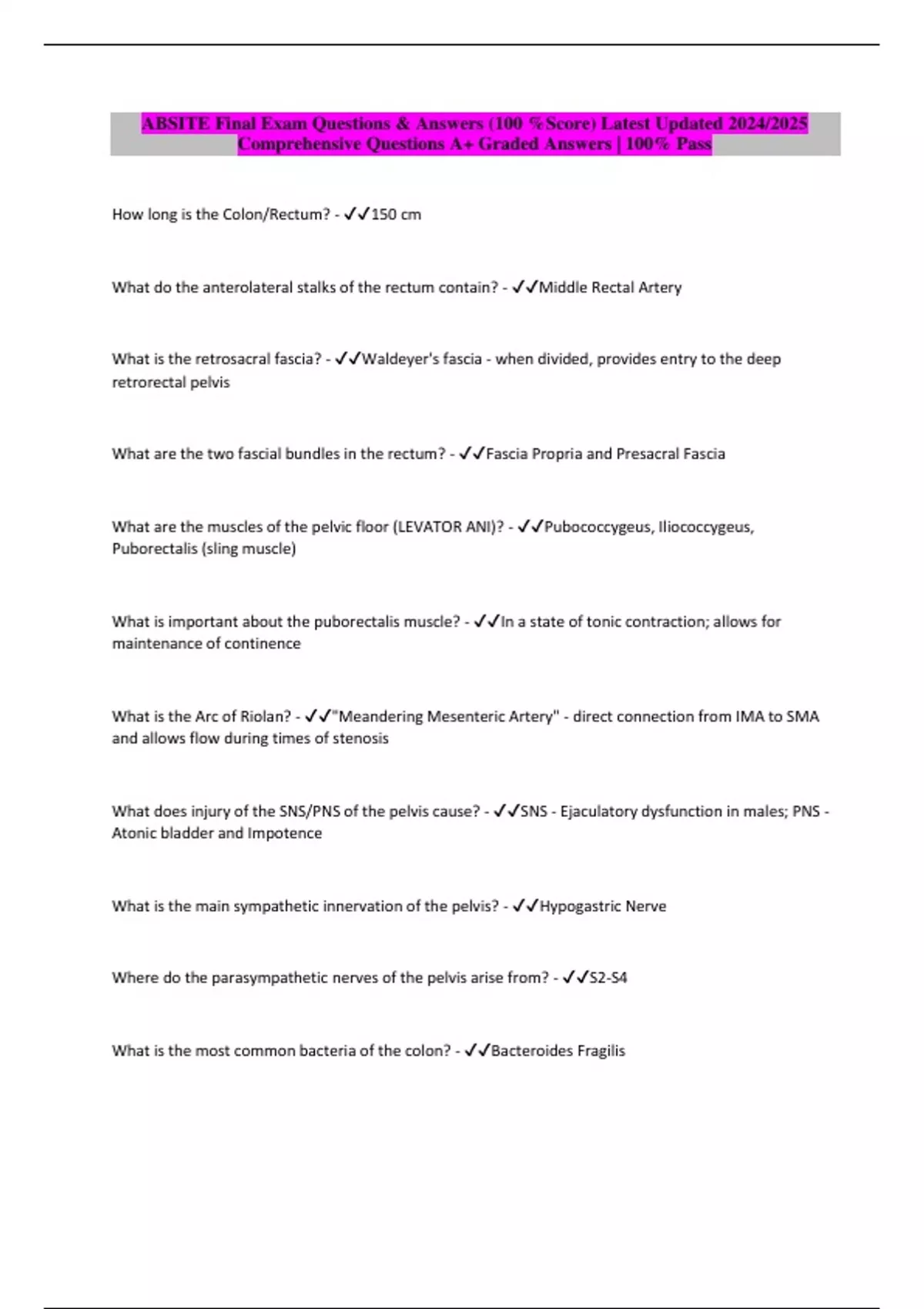 ABSITE Final Exam Questions & Answers (100 %Score) Latest Updated 2024/2025 Comprehensive Questions A+ Graded Answers | 100% Pas