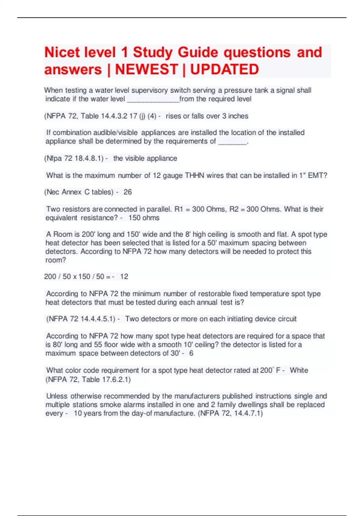 Nicet level 1 Study Guide questions and answers | NEWEST | UPDATED