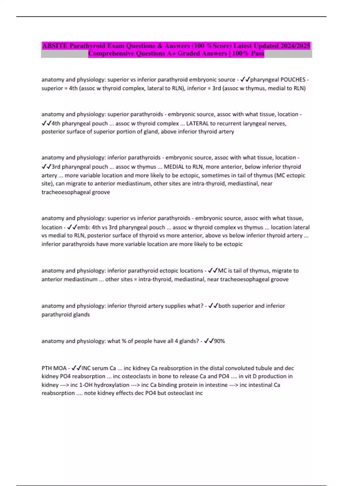 ABSITE Parathyroid Exam Questions & Answers (100 %Score) Latest Updated 2024/2025 Comprehensive Questions A+ Graded Answers | 100% Pass