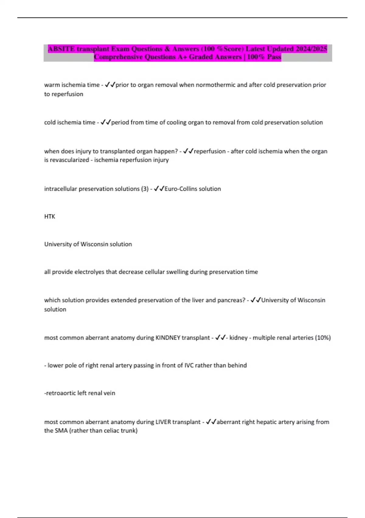 ABSITE transplant Exam Questions & Answers (100 %Score) Latest Updated 2024/2025 Comprehensive Questions A+ Graded Answers | 100% Pass