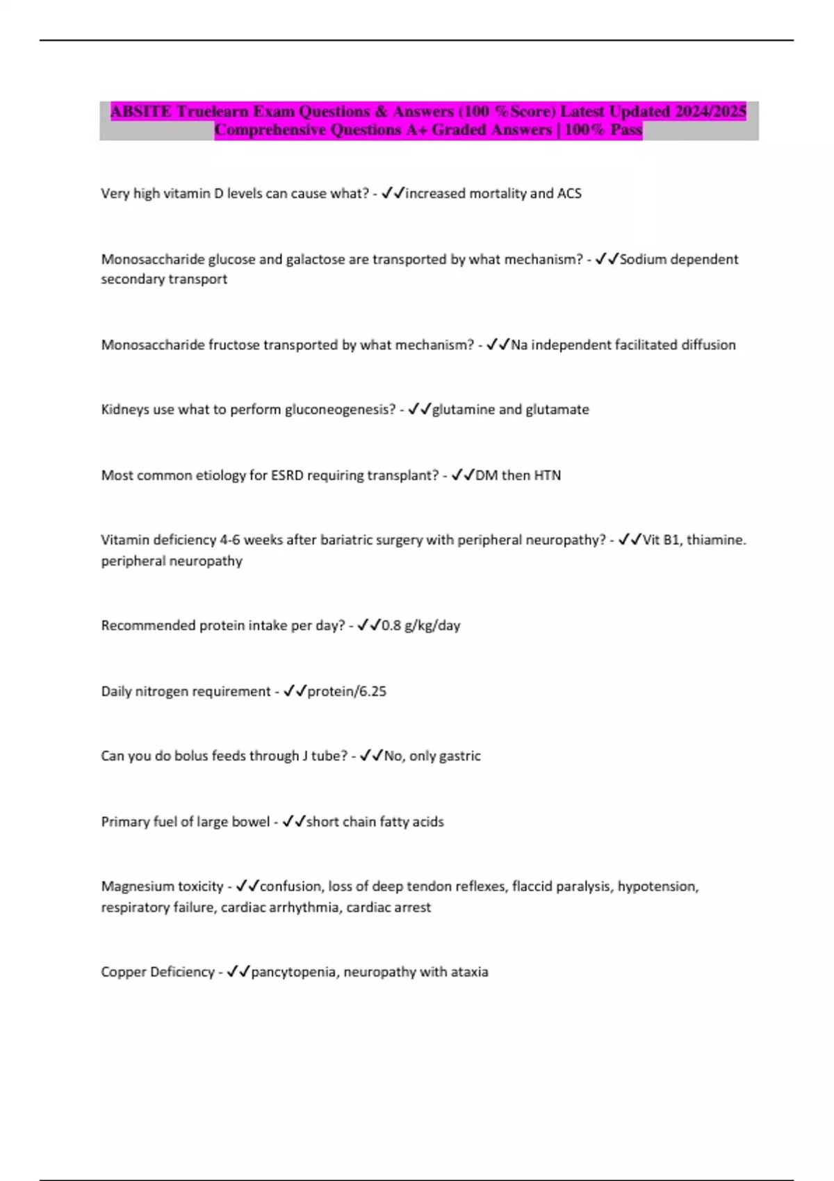 Package deal::: ABSITE Exams Qs & Answers (100 %Score) Latest updated 2024/2025 Comprehensive Questions A+ Graded Answers | 100% Pass