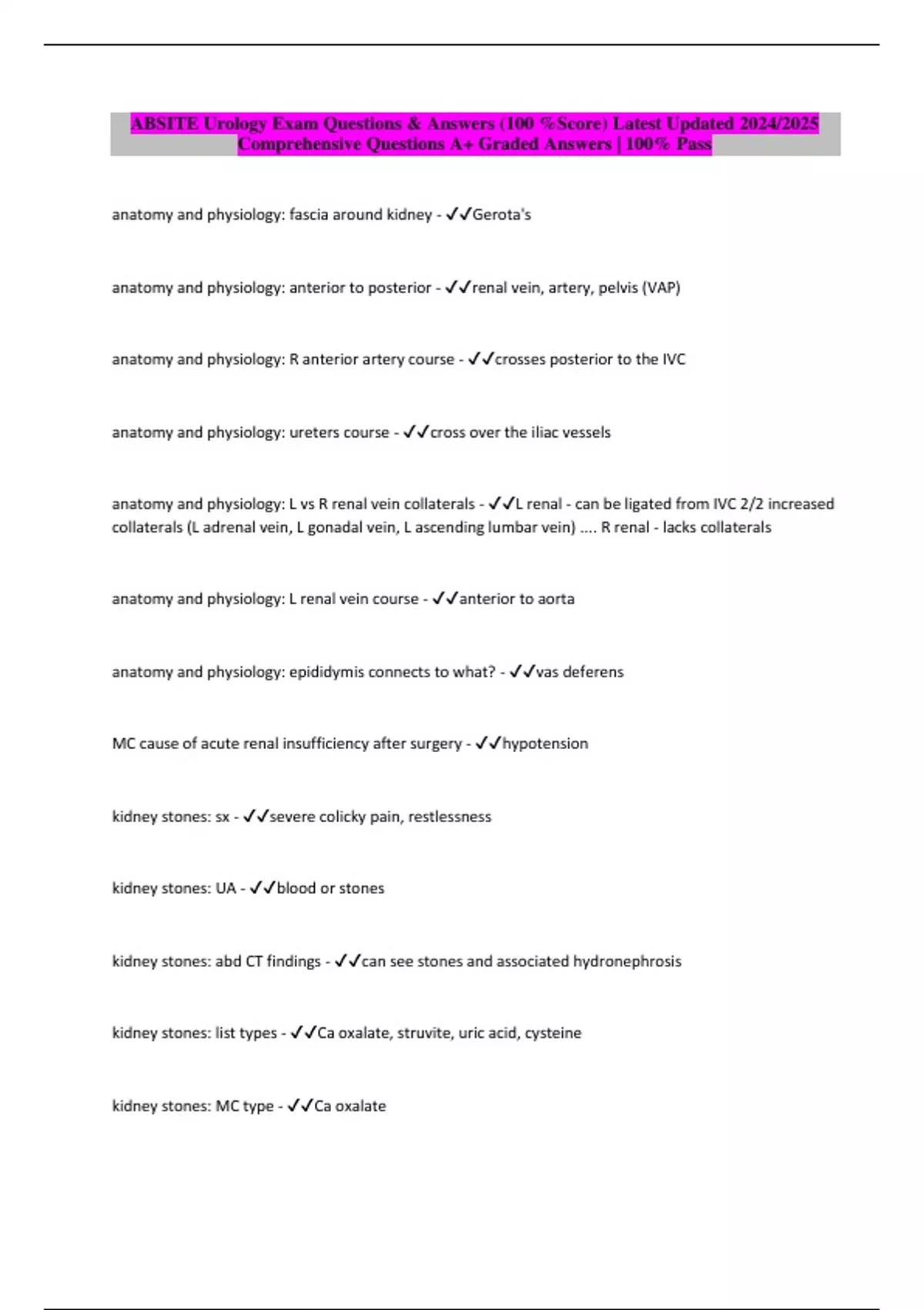 ABSITE Urology Exam Questions & Answers (100 %Score) Latest Updated 2024/2025 Comprehensive Questions A+ Graded Answers | 100% Pass