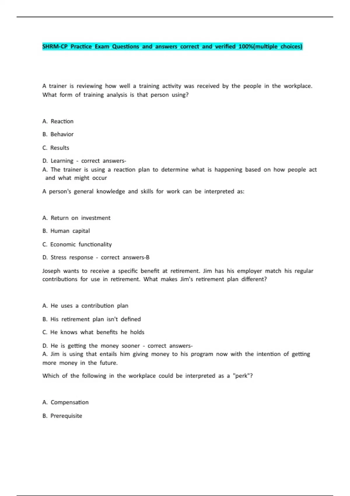 shrm cp practice exam questions and answers correc