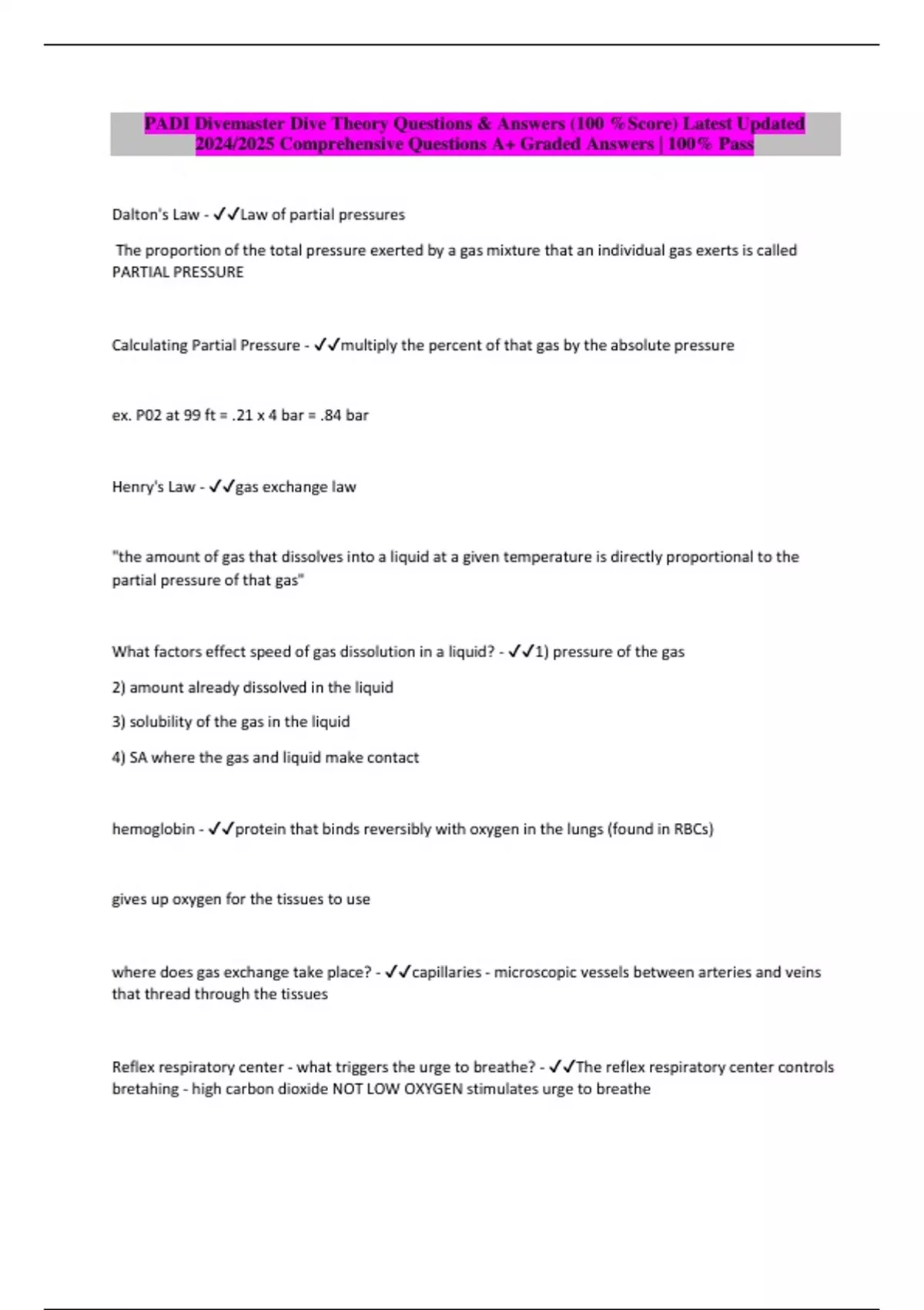 PADI Divemaster Dive Theory Questions & Answers (100 %Score) Latest Updated 2024/2025 Comprehensive Questions A+ Graded Answers | 100% Pass