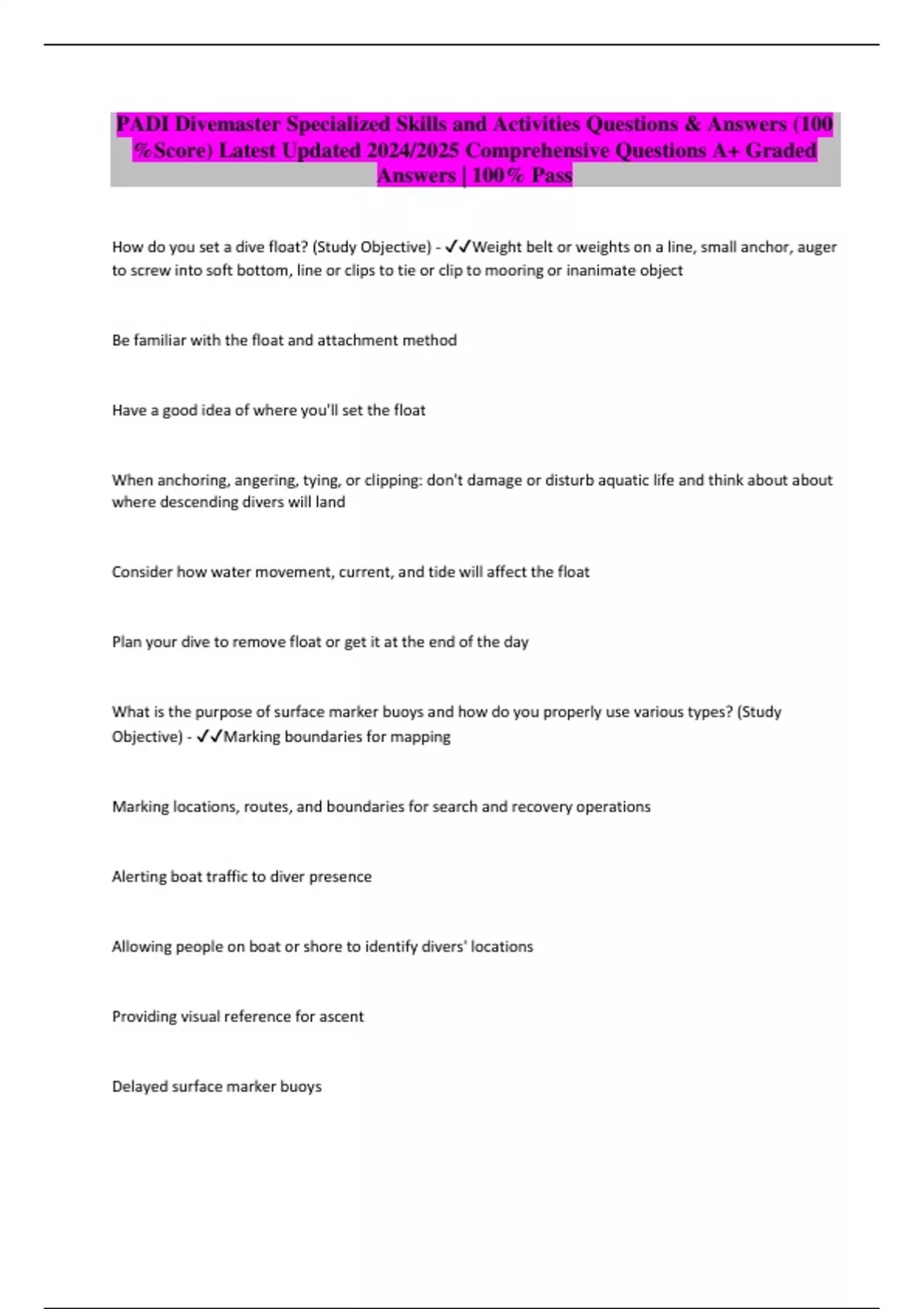 Package deal::: PADI Divemaster Exams Qs & Answers (100 %Score) Latest updated 2024/2025 Comprehensive Questions A+ Graded Answers | 100% Pass
