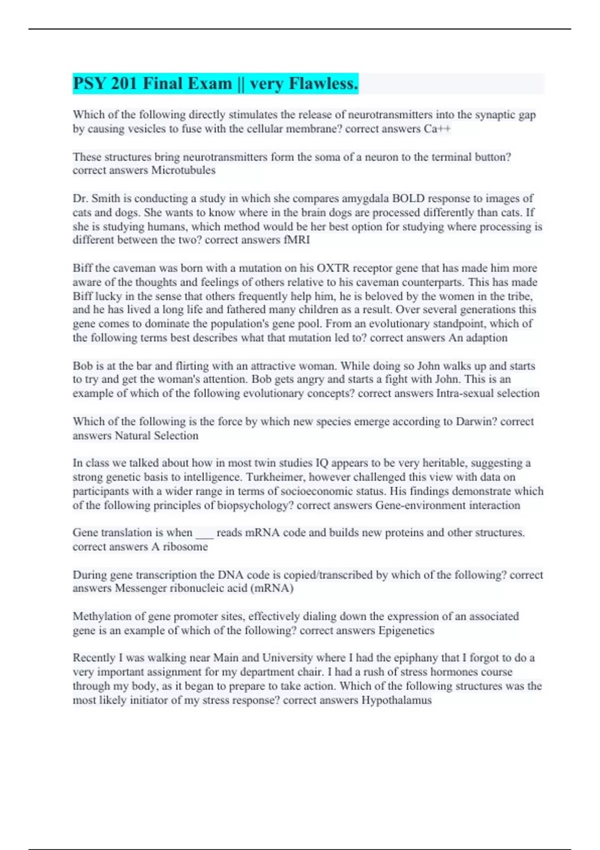 PSY 201 Final Exam || very Flawless.