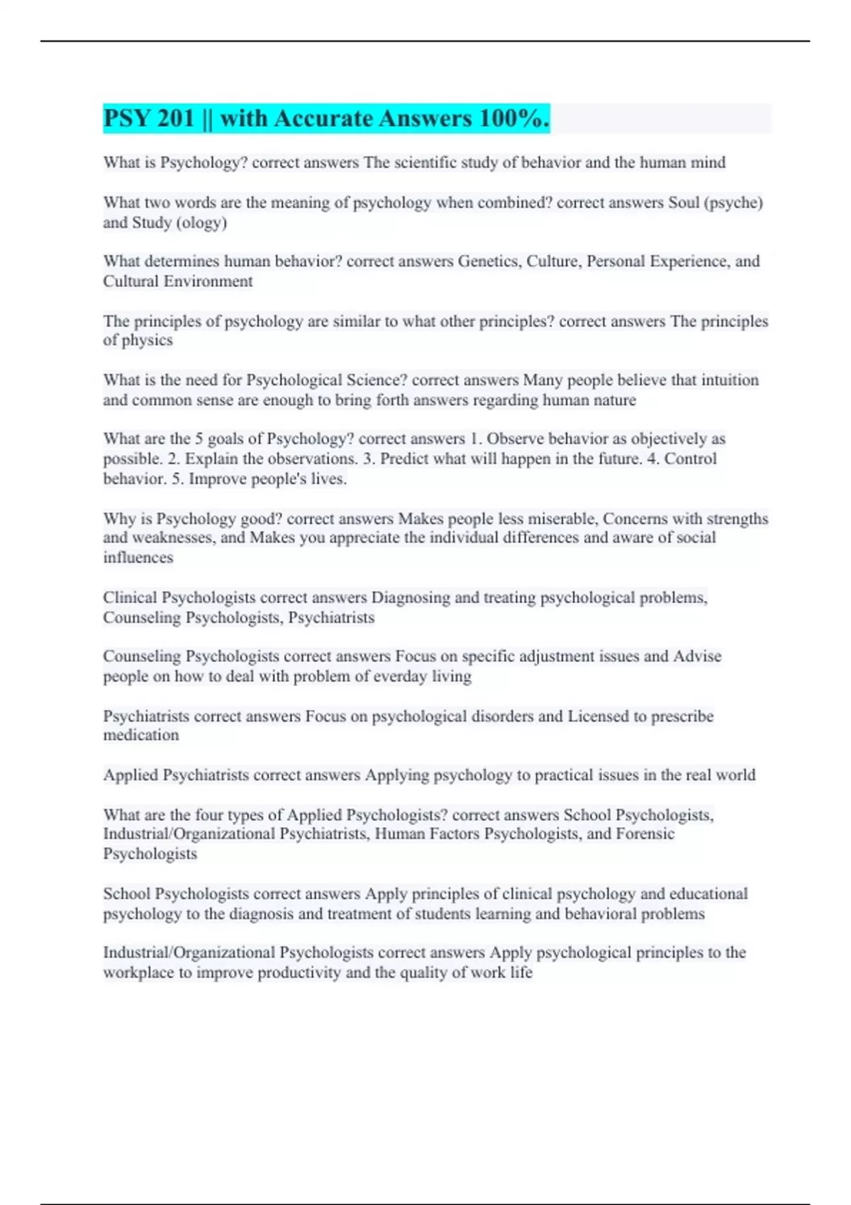 PSY 201 || with Accurate Answers 100%.