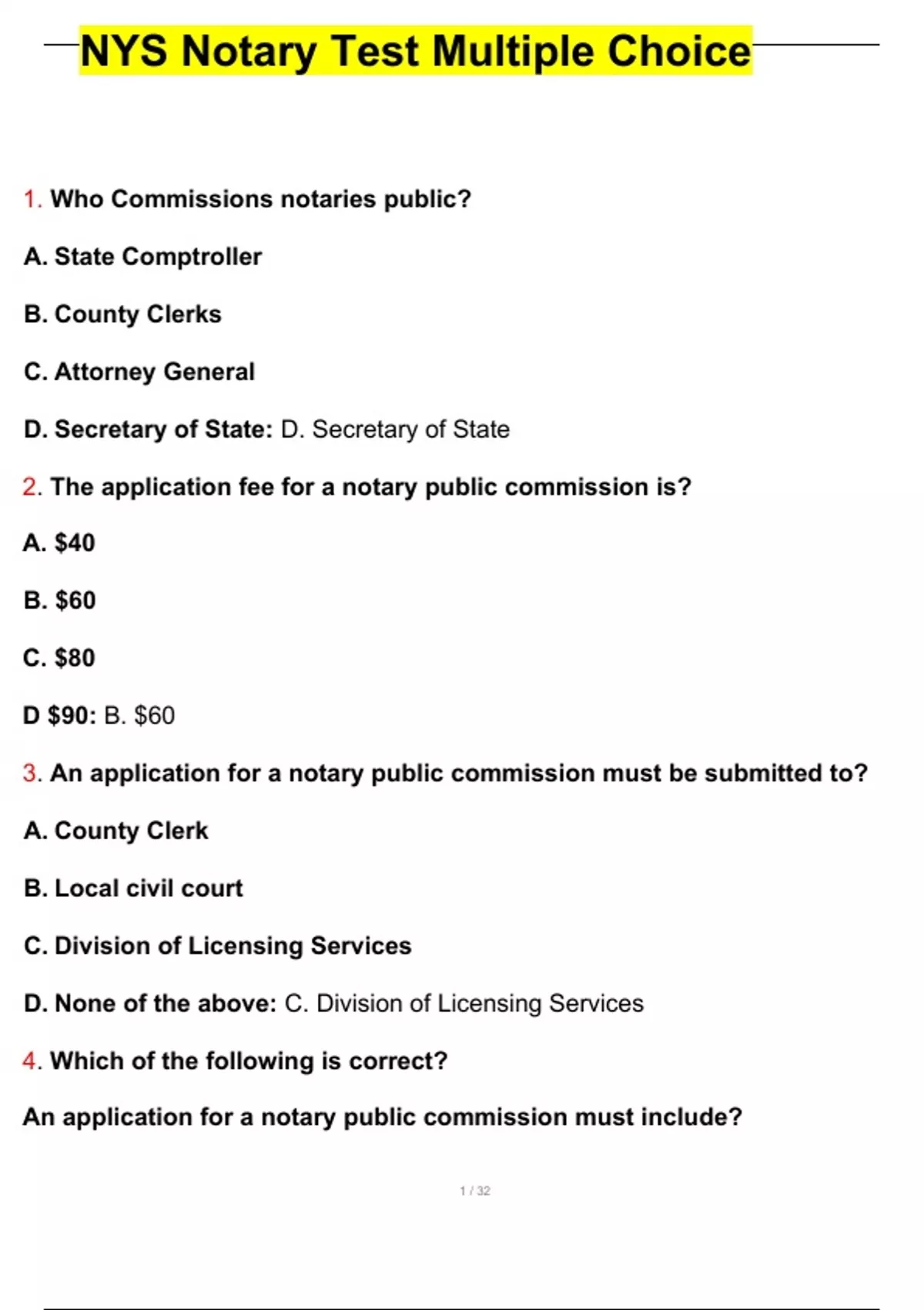 NYS Notary Test Multiple Choice exam 2023 with 100% correct answers