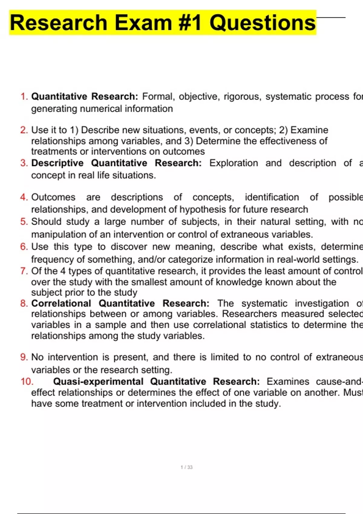 Research Exam questions and 100% correct answers